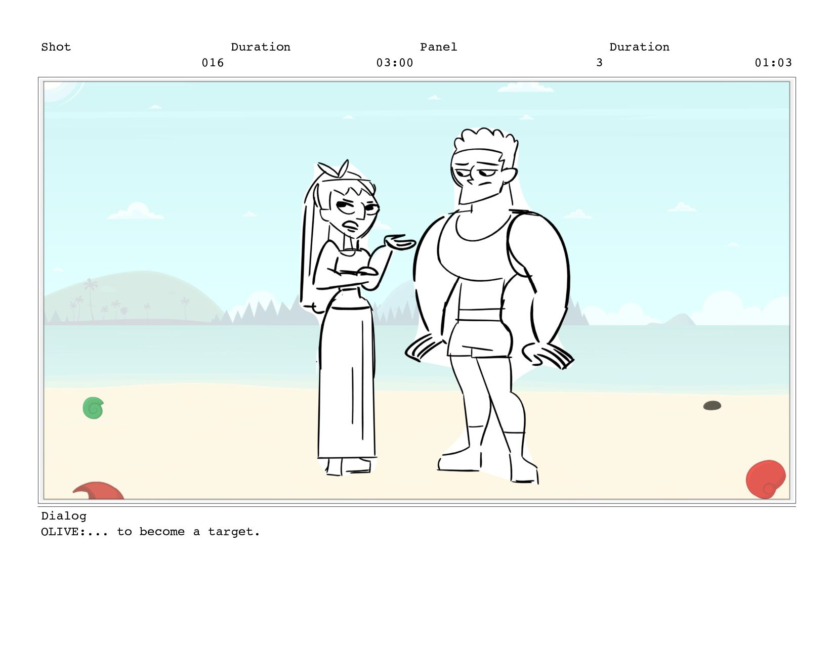 Shot 016 Duration 03:00 Panel 3 Duration 01:03 Dialog OLIVE:...