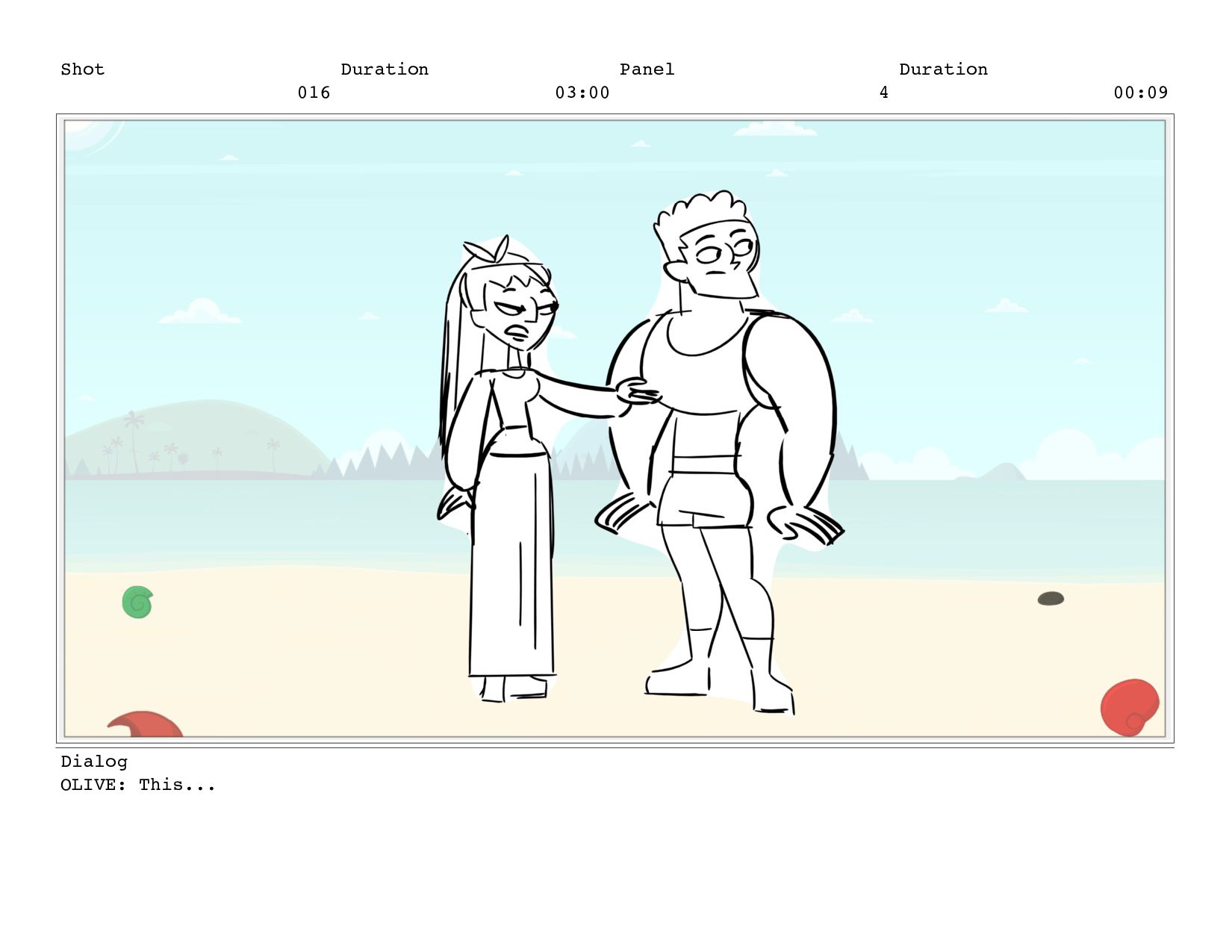 Shot 016 Duration 03:00 Panel 4 Duration 00:09 Dialog OLIVE: