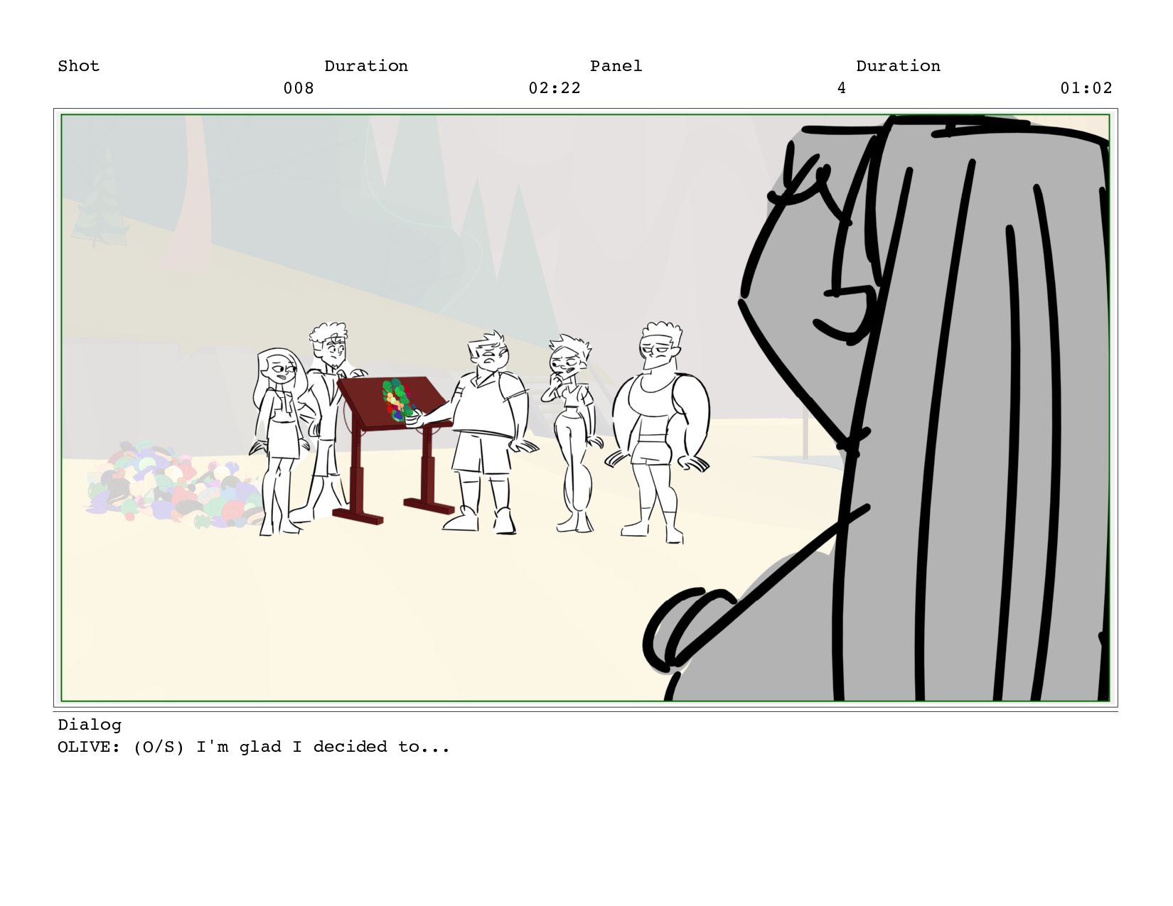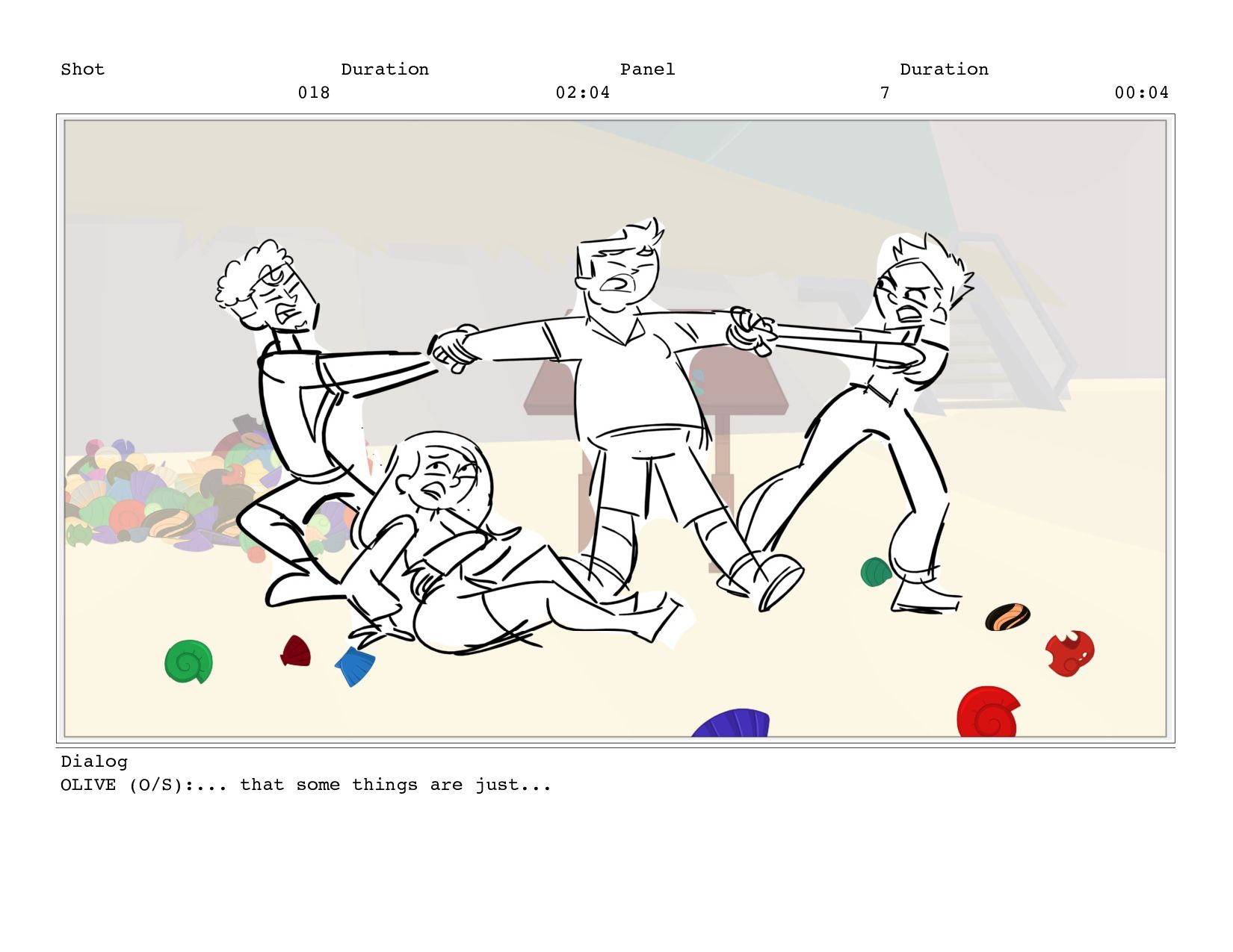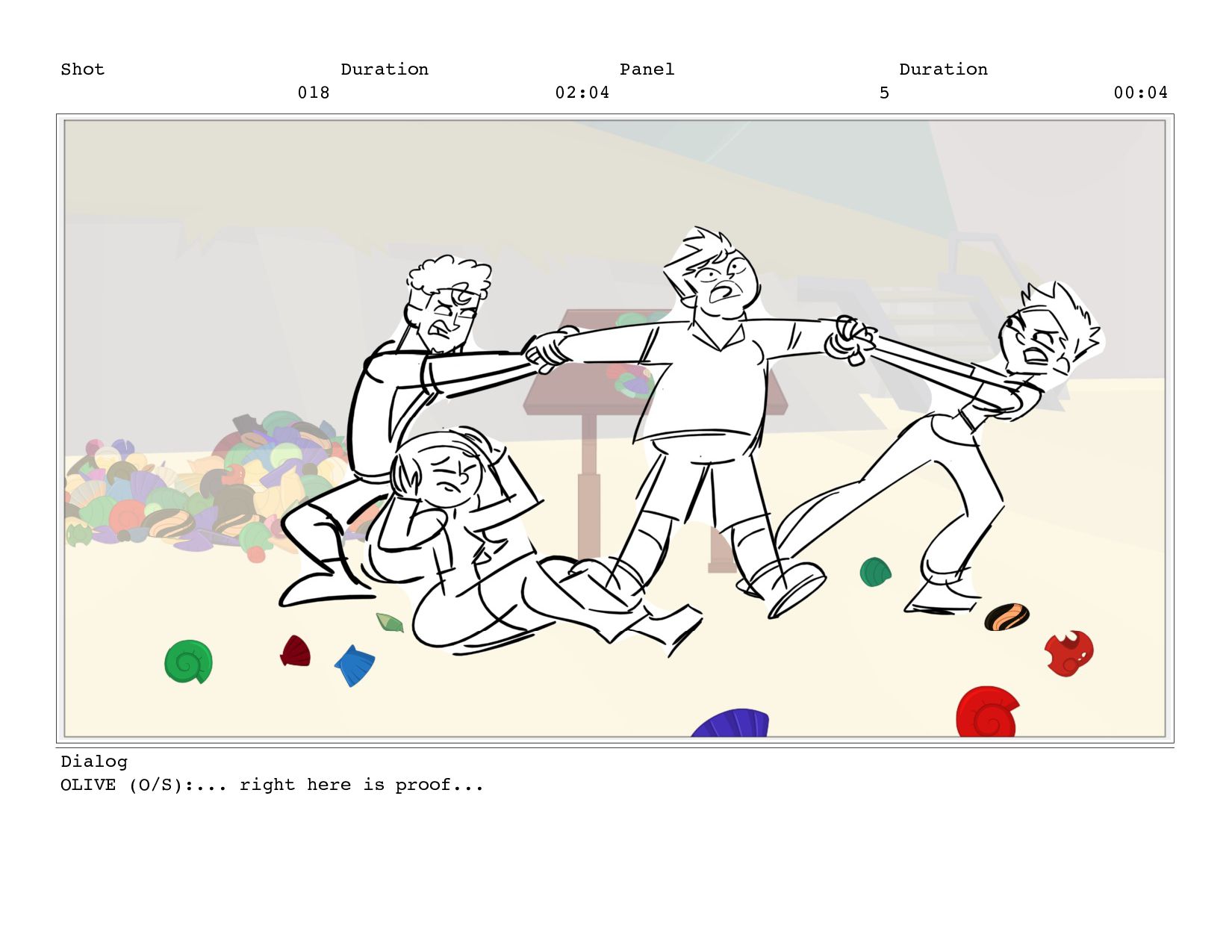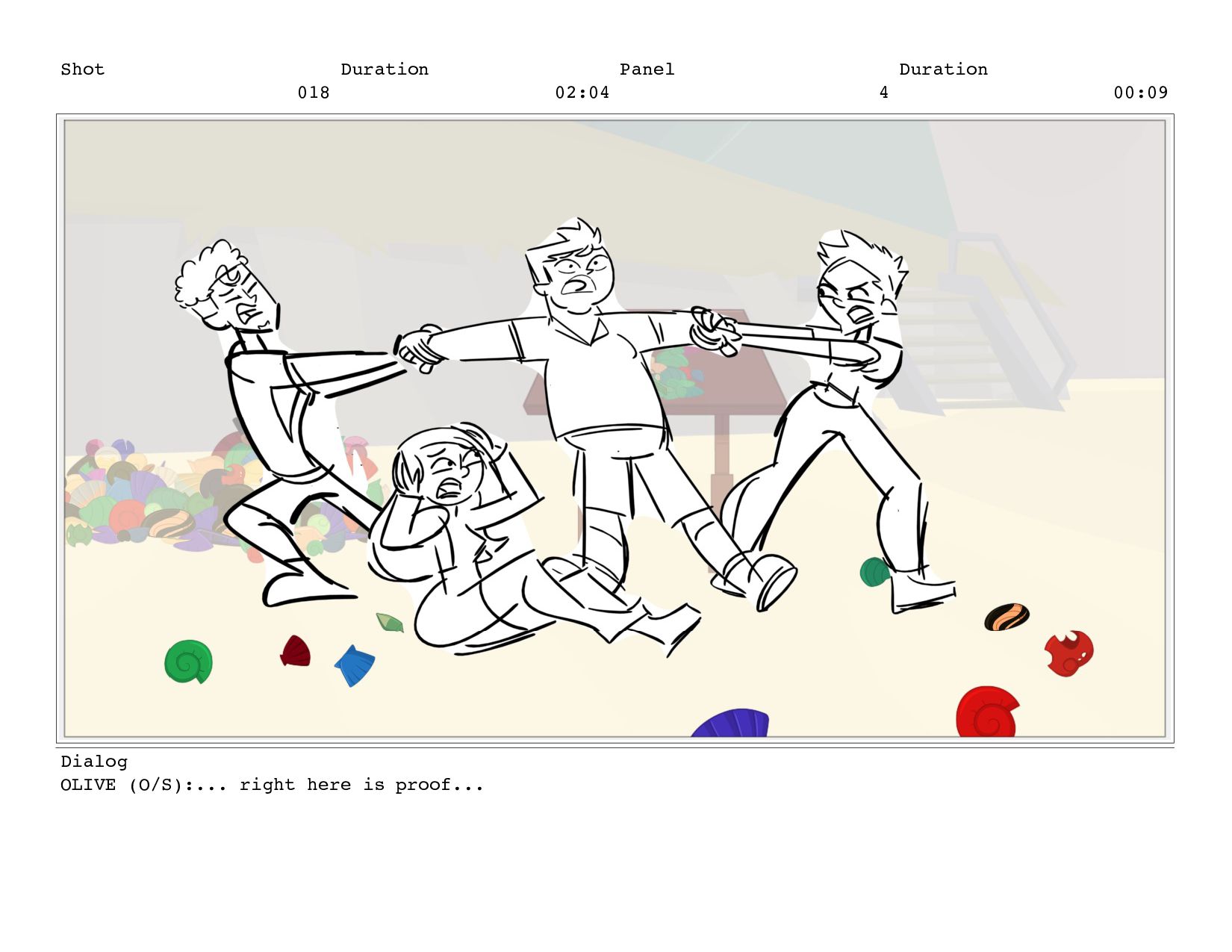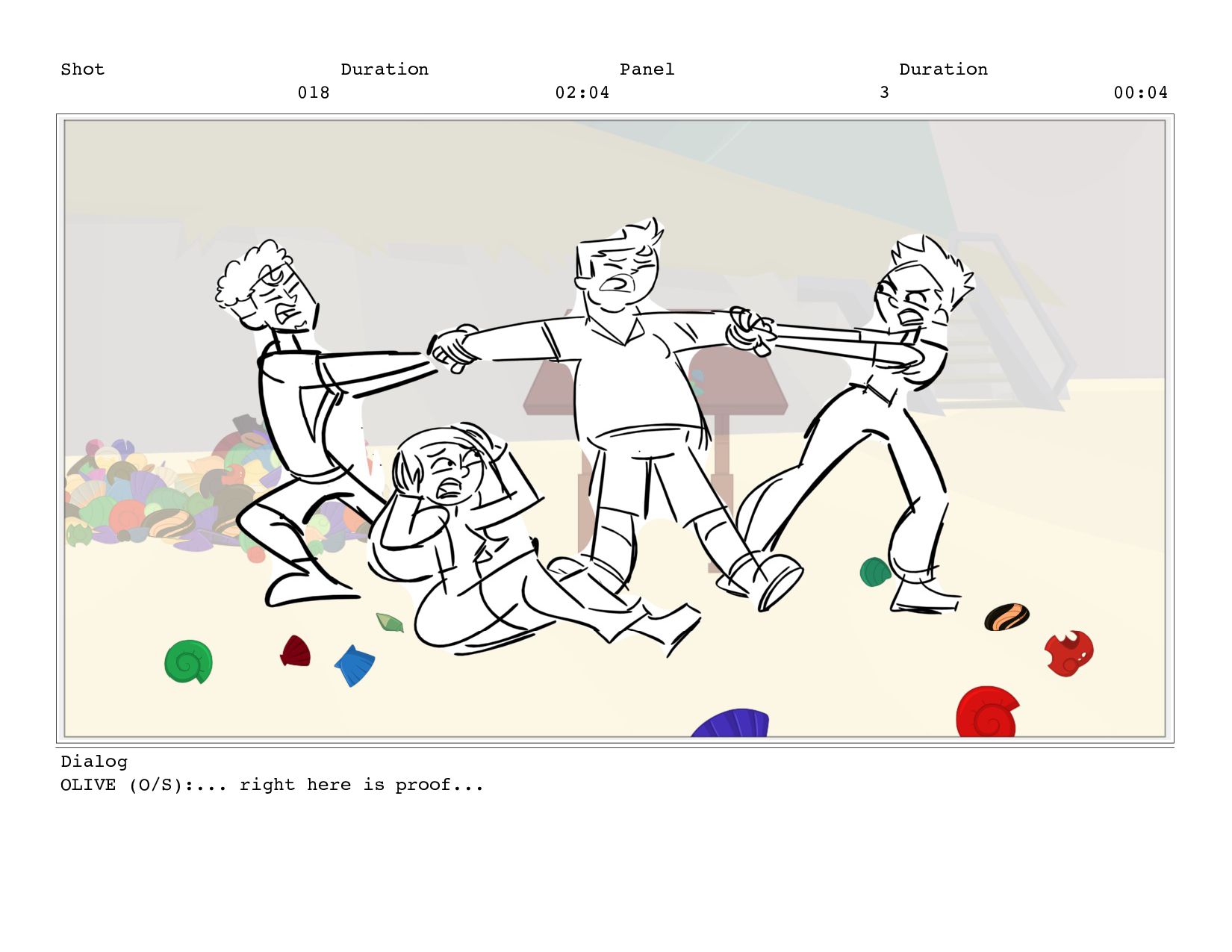 Shot 018 Duration 02:04 Panel 5 Duration 00:04 Dialog OLIVE
