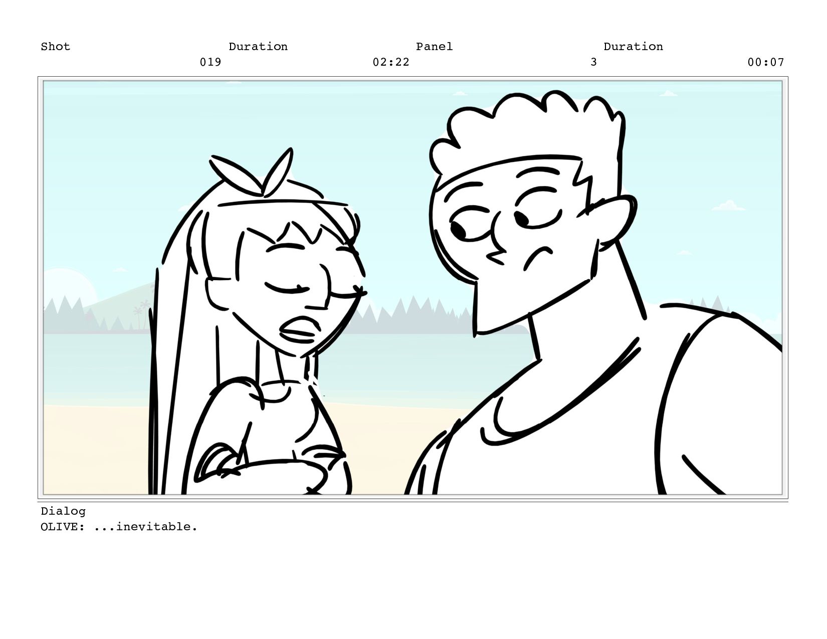 Shot 019 Duration 02:22 Panel 2 Duration 00:07 Dialog OLIVE: