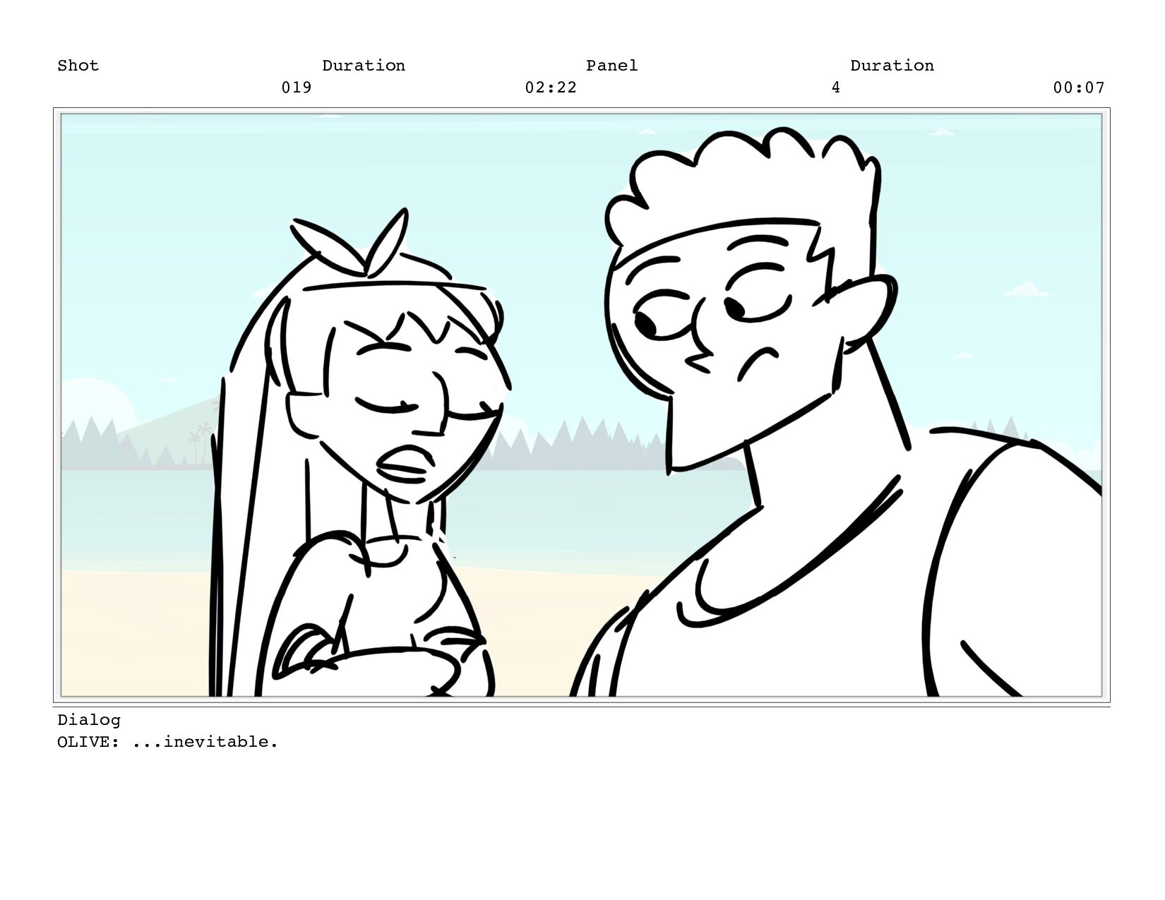 Shot 019 Duration 02:22 Panel 4 Duration 00:07 Dialog OLIVE: