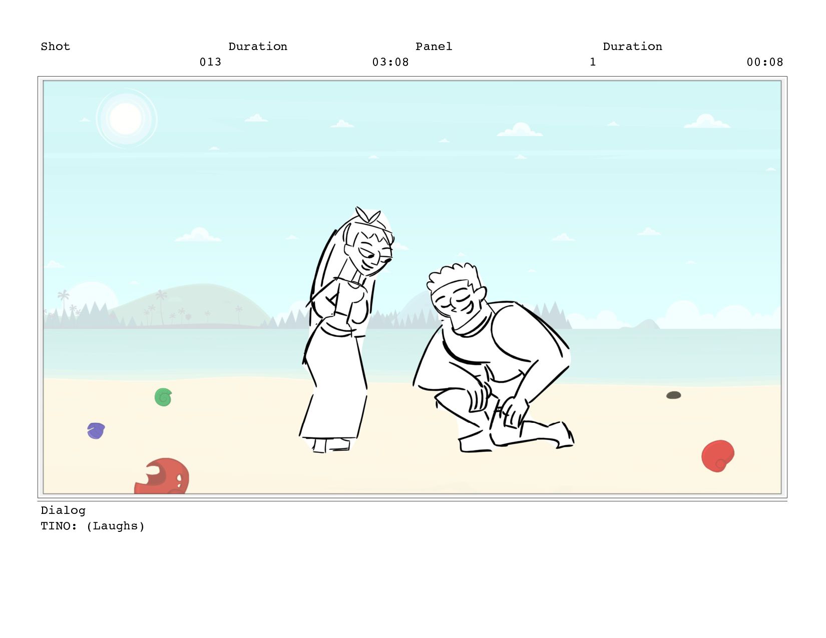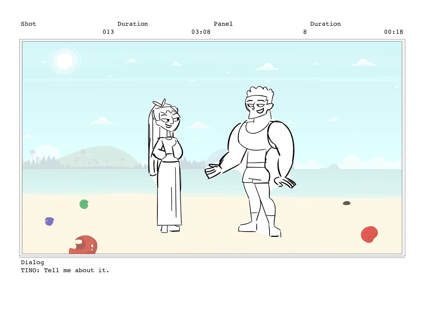 Shot 013 Duration 03:08 Panel 1 Duration 00:08 Dialog TINO: