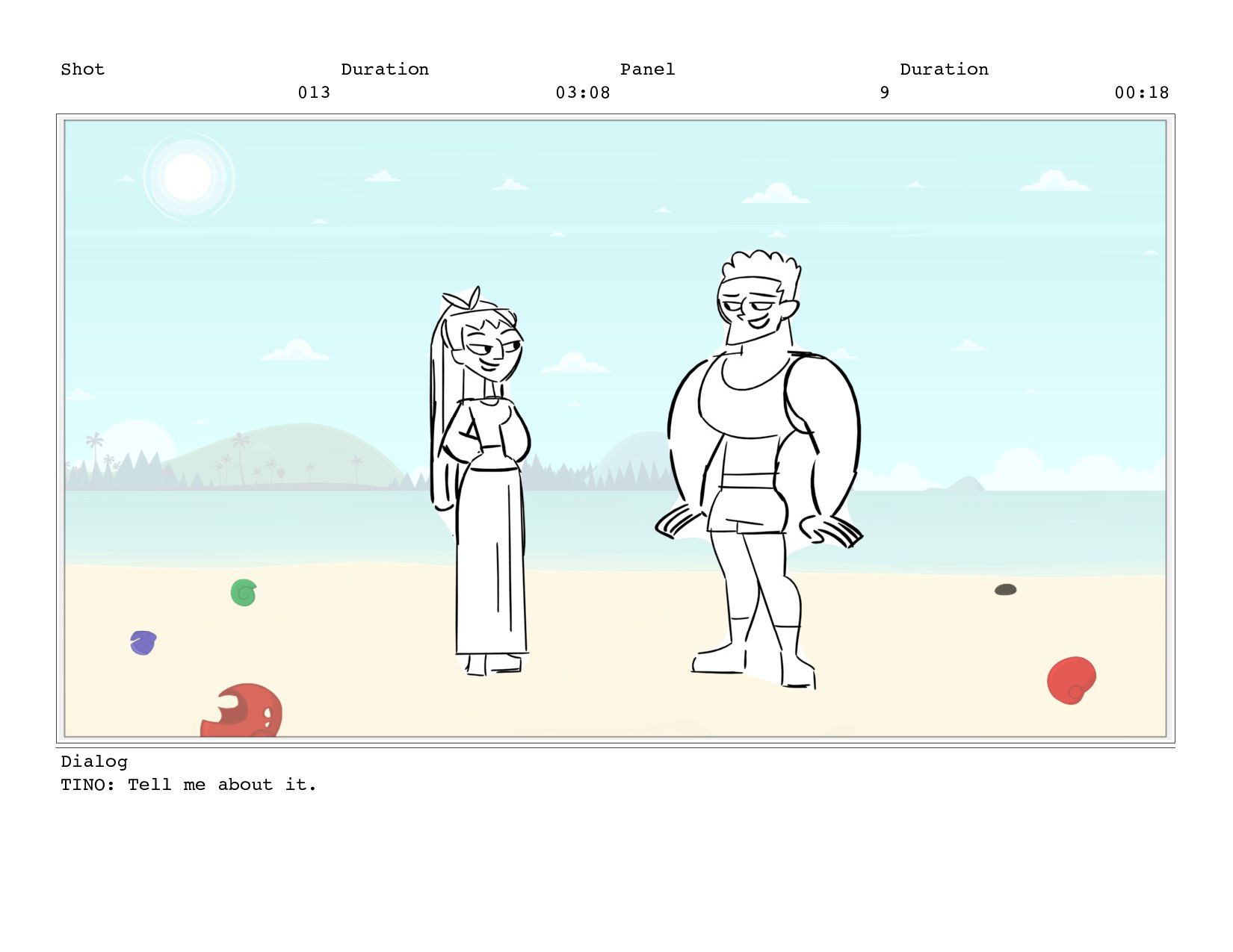 Shot 013 Duration 03:08 Panel 8 Duration 00:18 Dialog TINO:
