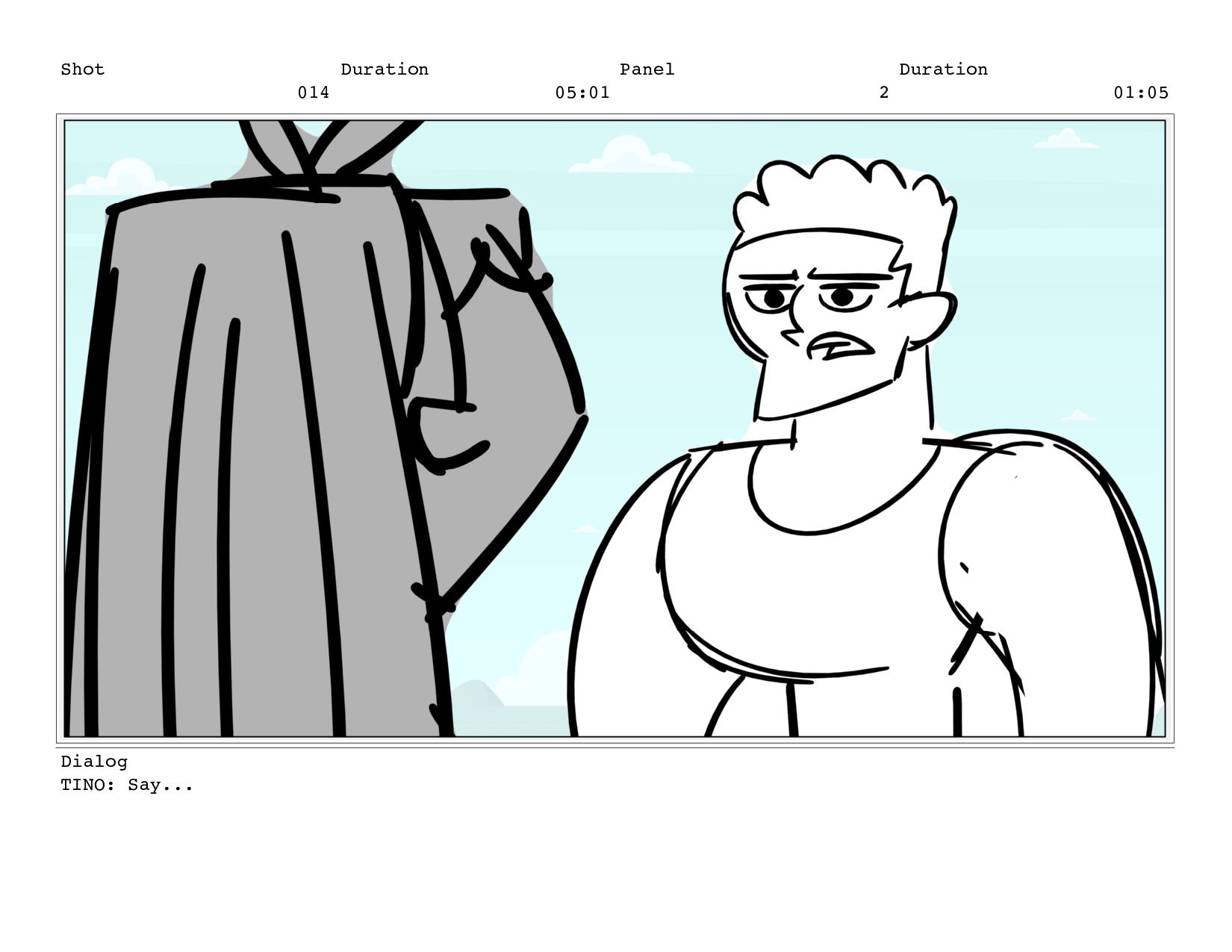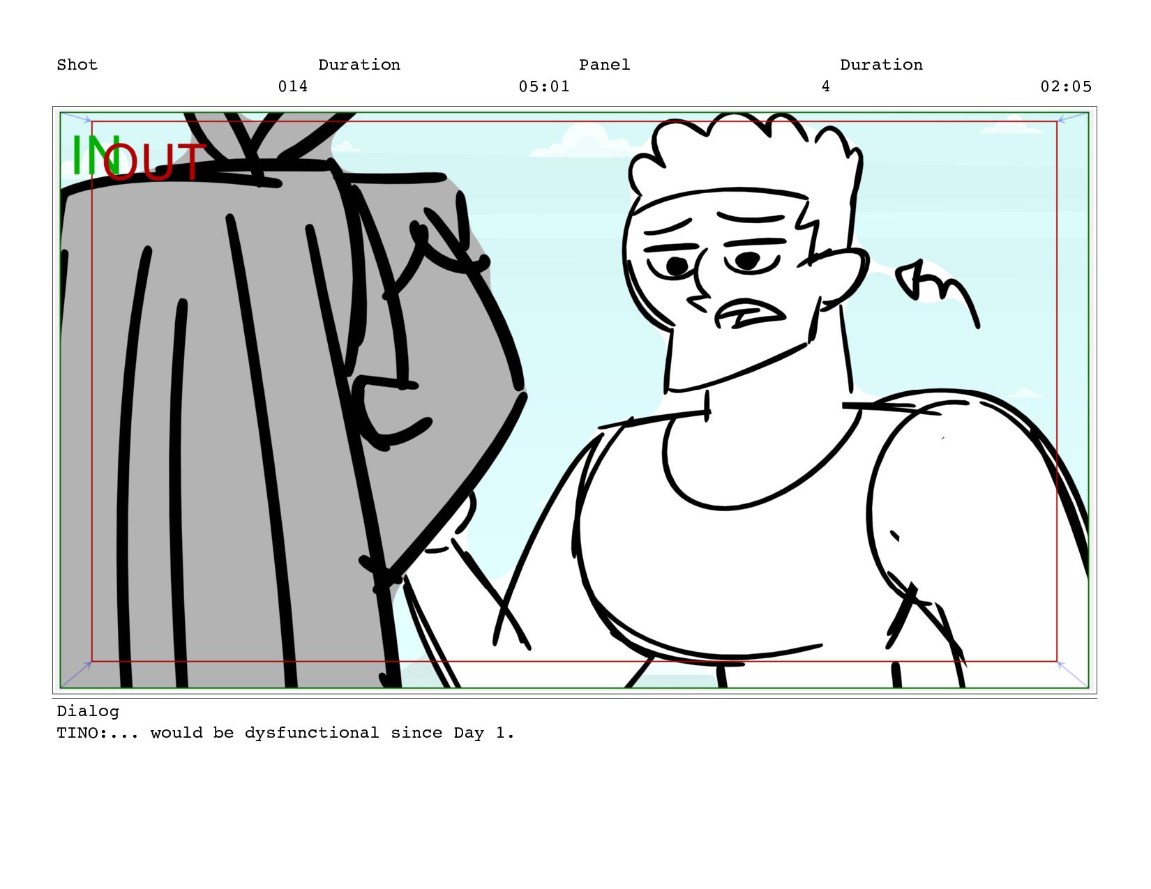 Shot 014 Duration 05:01 Panel 2 Duration 01:05 Dialog TINO: