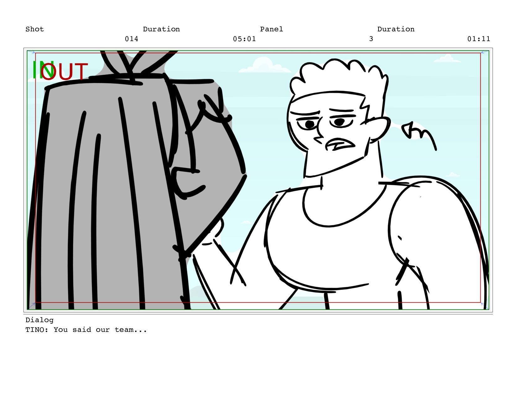 Shot 014 Duration 05:01 Panel 3 Duration 01:11 Dialog TINO: