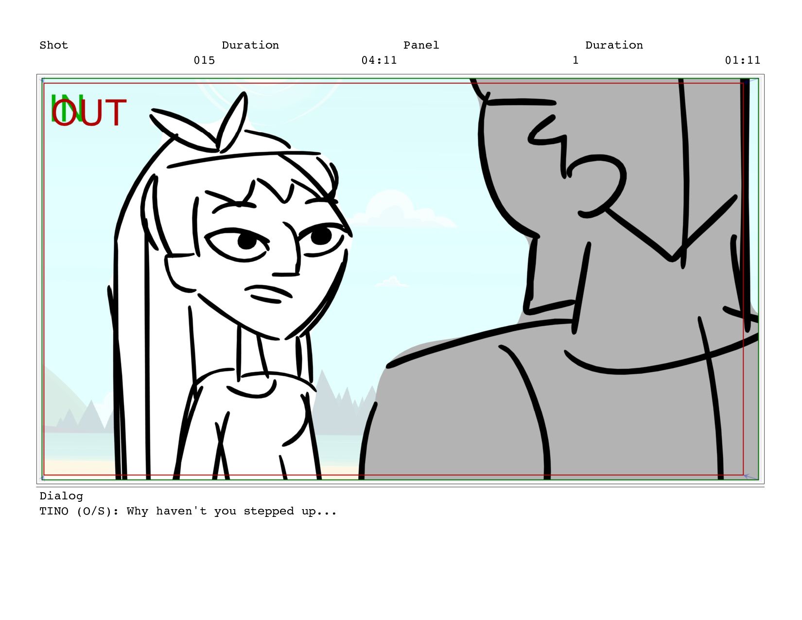 Shot 015 Duration 04:11 Panel 1 Duration 01:11 Dialog TINO