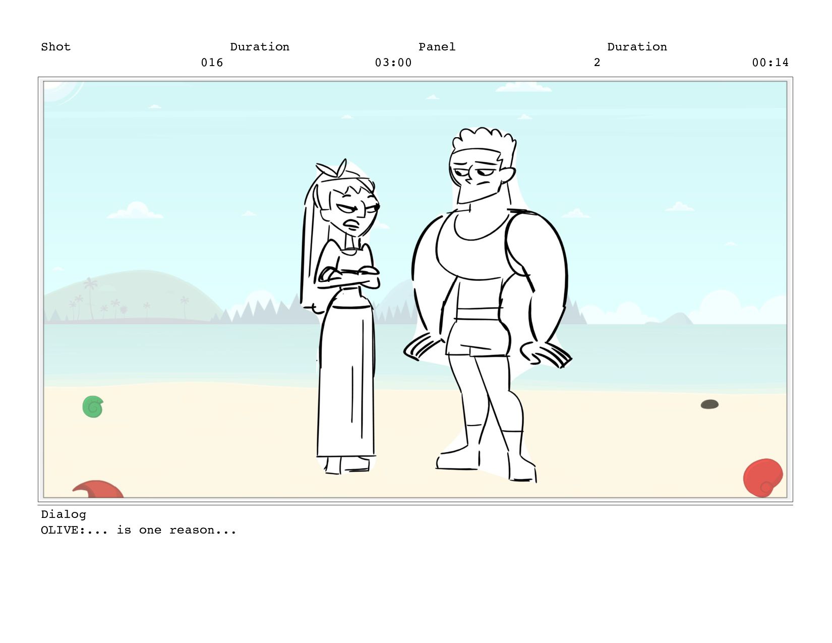 Shot 016 Duration 03:00 Panel 2 Duration 00:14 Dialog OLIVE:...