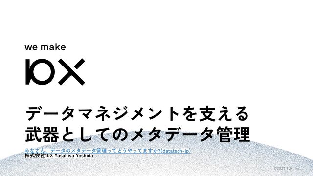 ©2023 10X, Inc. データマネジメントを支える 武器としてのメタデータ管理 みなさん、データのメタデータ管理ってどうやってますか?(datatech-jp) 株式会社10X Yasuhisa Yoshida