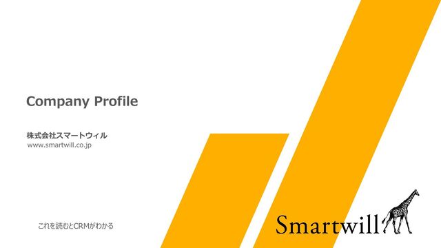 株式会社スマートウィル (英文表記:Smartwill Inc.) 代表者 代表取締役 坂本 雅志 設立 2010年4月 資本金 17,855,000円(資本準備金含む) 所在地 東京都渋谷区富ヶ谷2-43-10 OMB YOYOGIUEHARA 3F 従業員数 22人(業務委託社員含む) 顧問弁護士 ネクセル総合法律事務所 URL www.smartwill.co.jp プライバシーマーク 認定番号 第10840522(05)号 プライバシーマーク認定事業者 事業内容 CRMコンサルティング、デジタルソリューション開発提供、 コミュニケーション施策実行 *Customer Relationship Management(顧客関係管理) ∎ 株式会社スマートウィルは、CRMコンサルティング会社として、 ラグジュアリーブランドなど小売・サービス関連大手企業100社以上に CRMコンサルティングサービスを提供してきました。