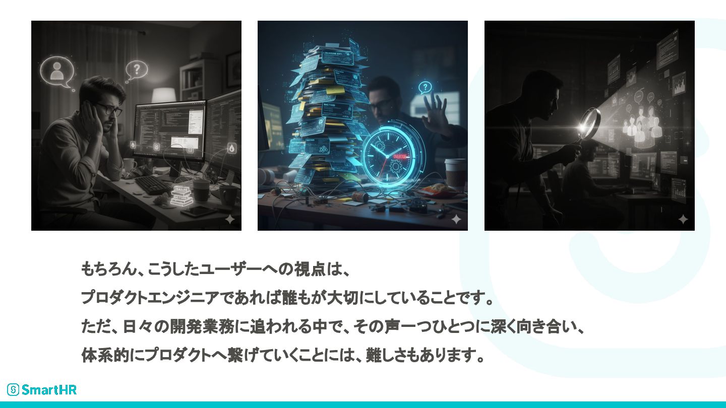 良いプロダクトを作るために不可欠な「ユーザーの"声なき声"を拾い上げること」の重要性。 しかし、日々の開発業務に追われる中で、その声に深く向き合うことの難しさを感じているエンジニアは少なくありません。