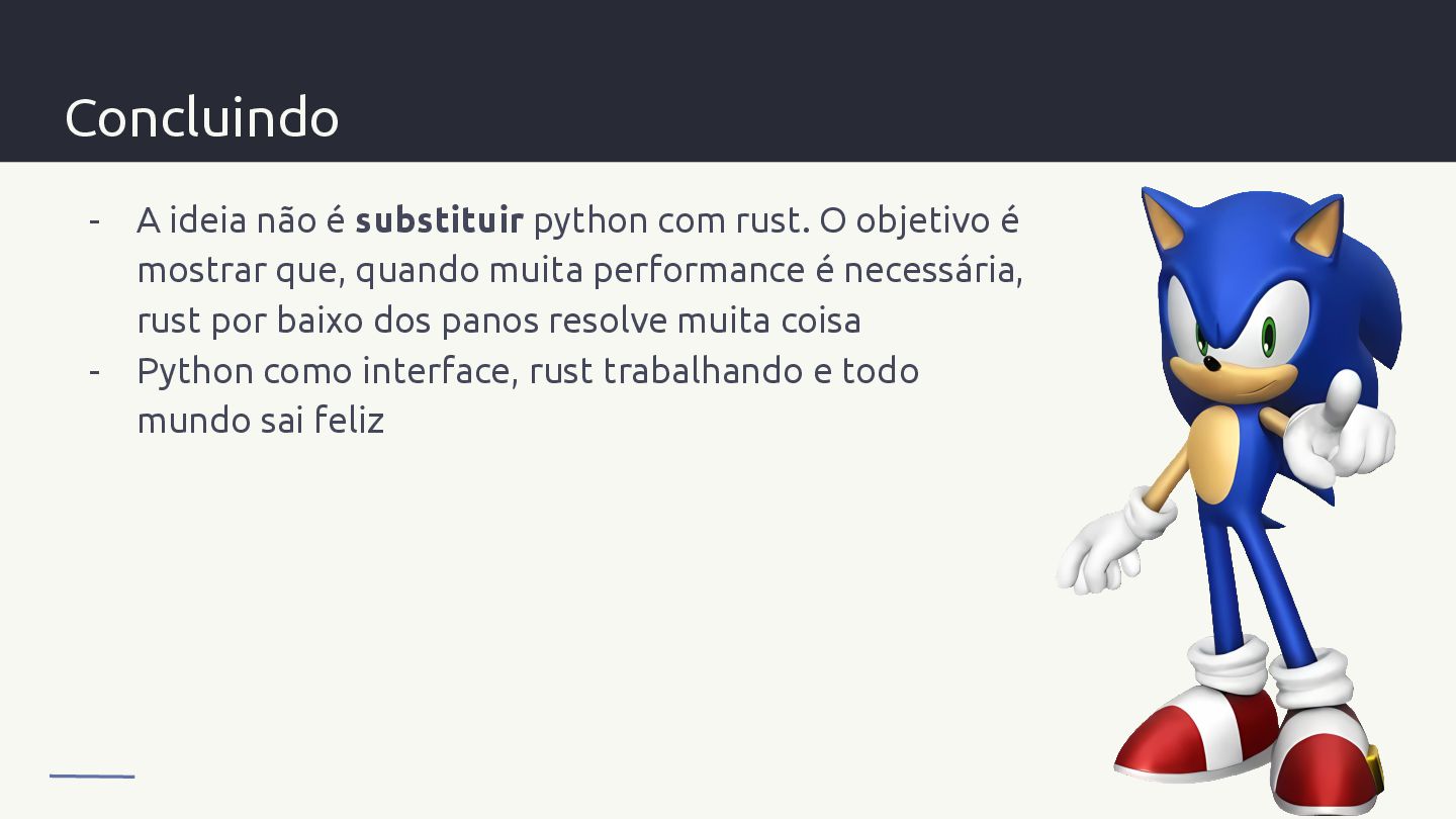 10. Concluindo - A ideia não é substituir python com rust.