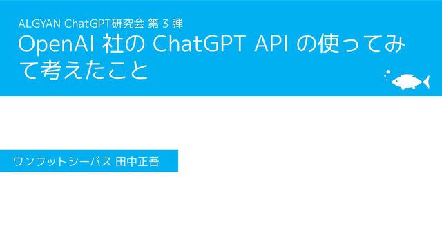 ALGYAN ChatGPT研究会 第 3 弾「OpenAI 社の ChatGPT API の使ってみて考えたこと」の登壇資料です。
