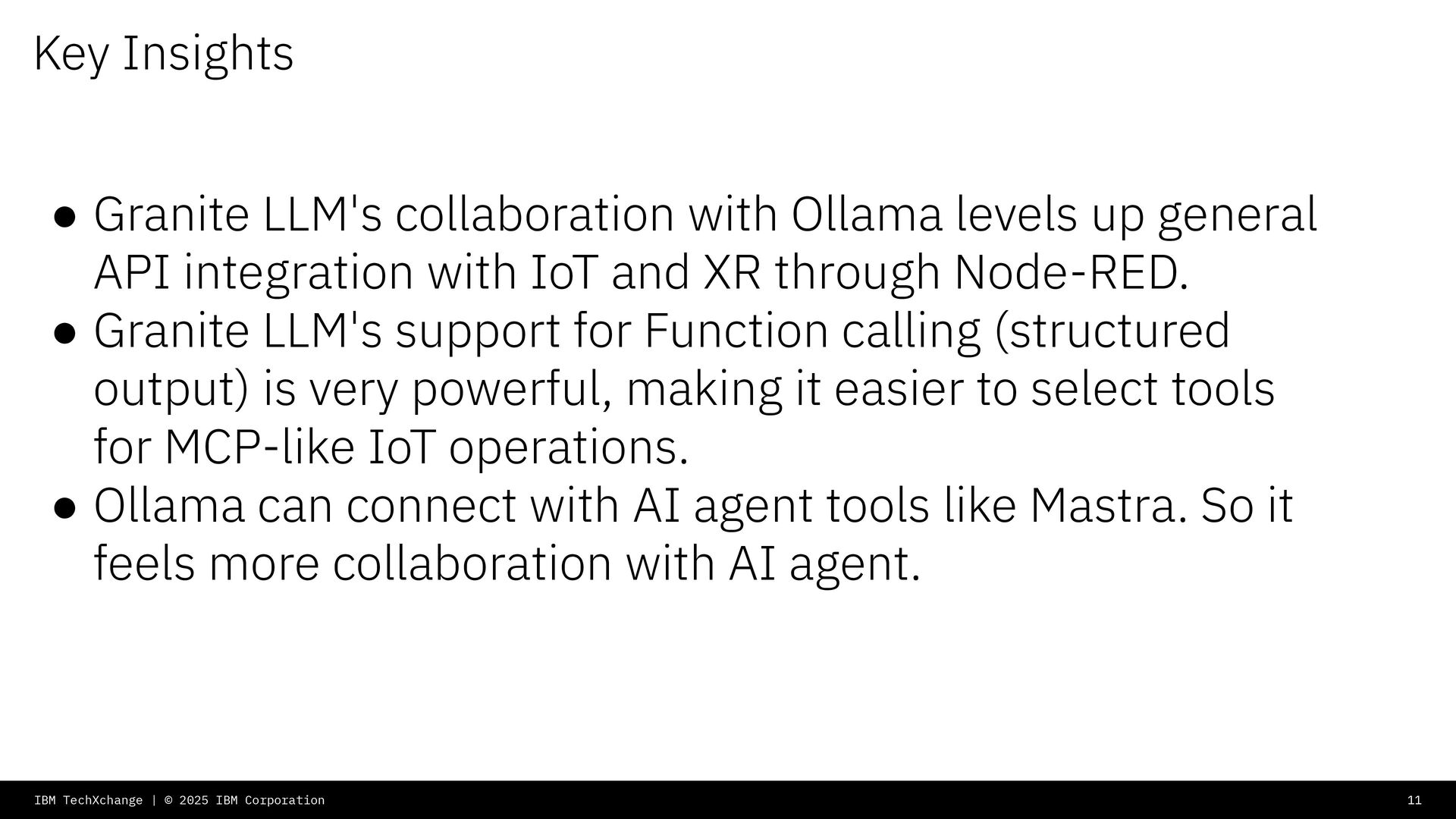 • Granite LLM's collaboration with Ollama levels up general API integration with IoT and XR through Node-RED.