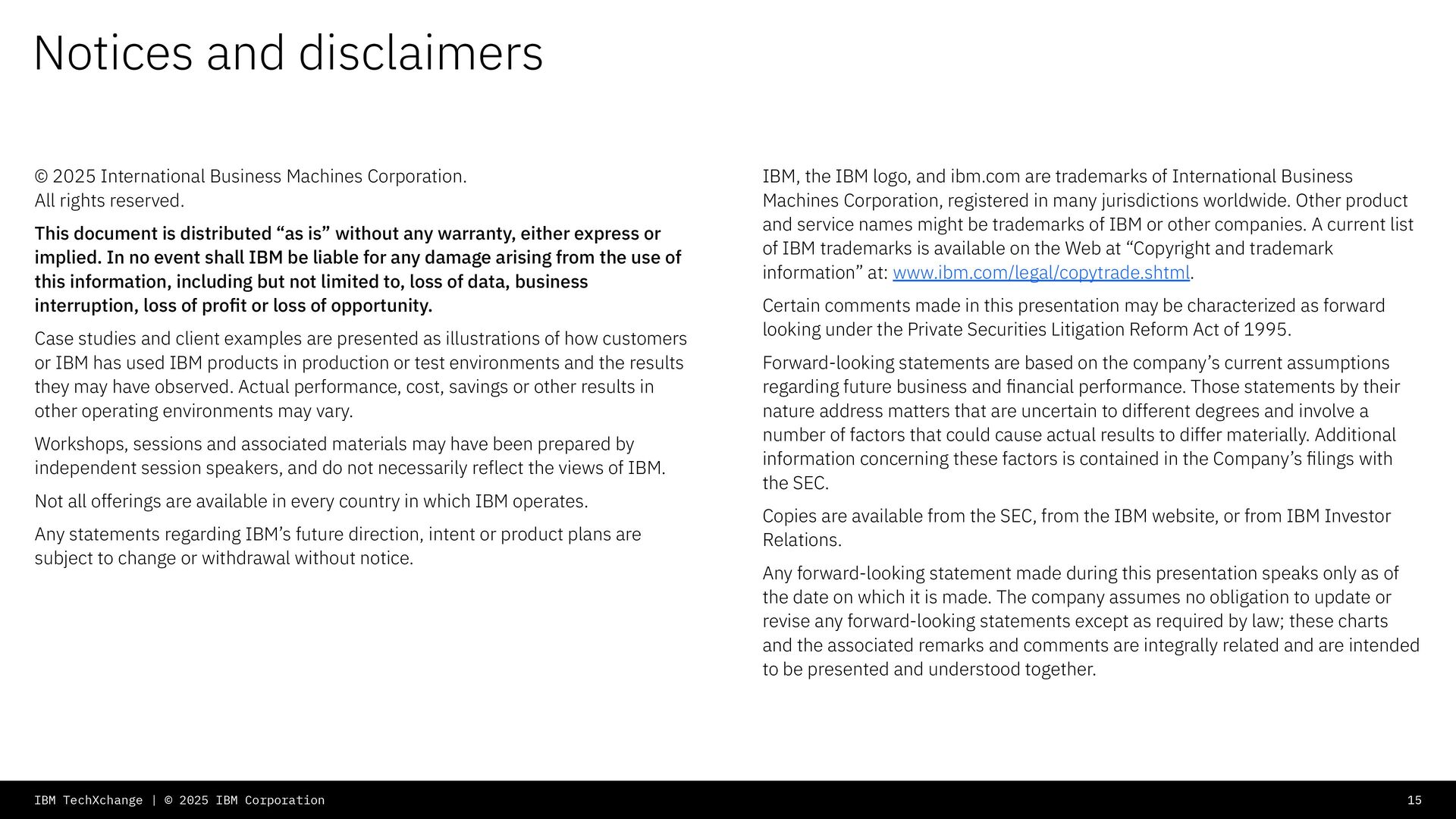Workshops, sessions and associated materials may have been prepared by independent session speakers, and do not necessarily reflect the views of IBM.