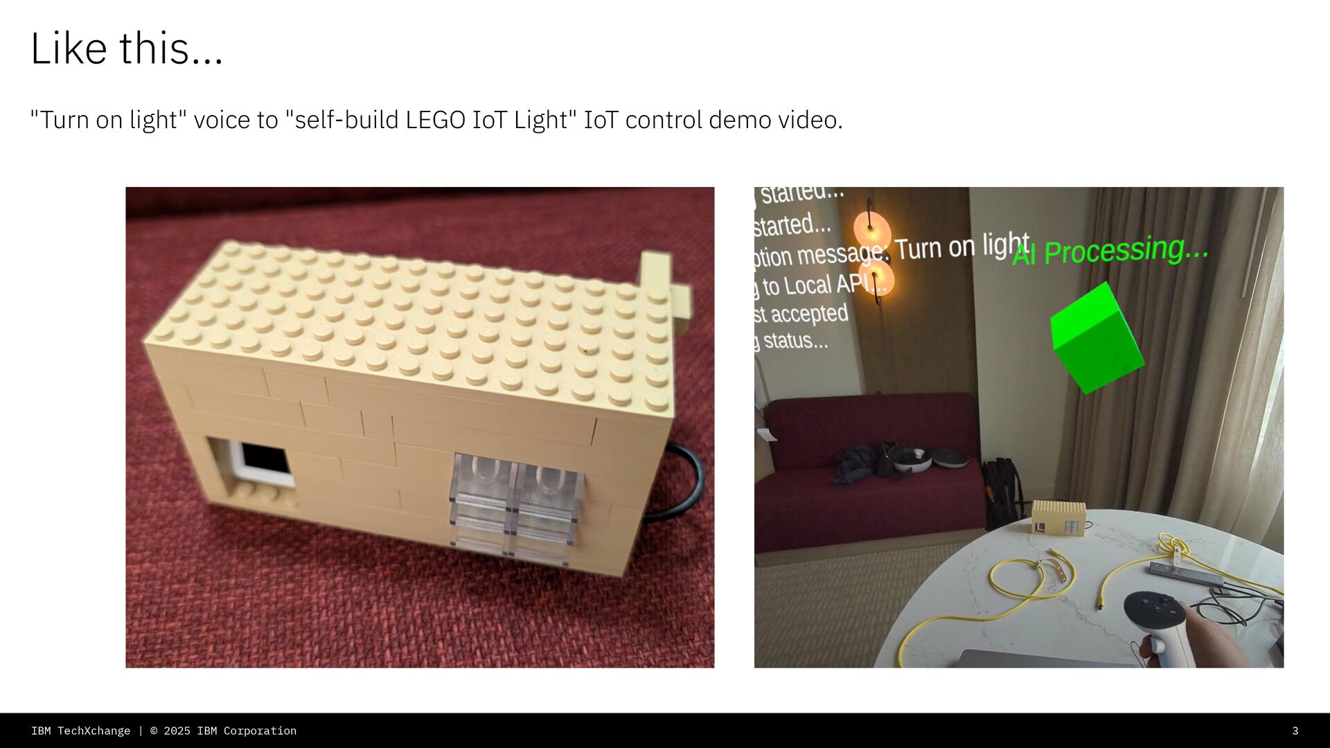 This is my presentation in IBM TechXchange 2025 Orlando. Title is "1907 IBM Granite LLM and XR Device Technology Collaboration Live Demo and Knowledge Talk".