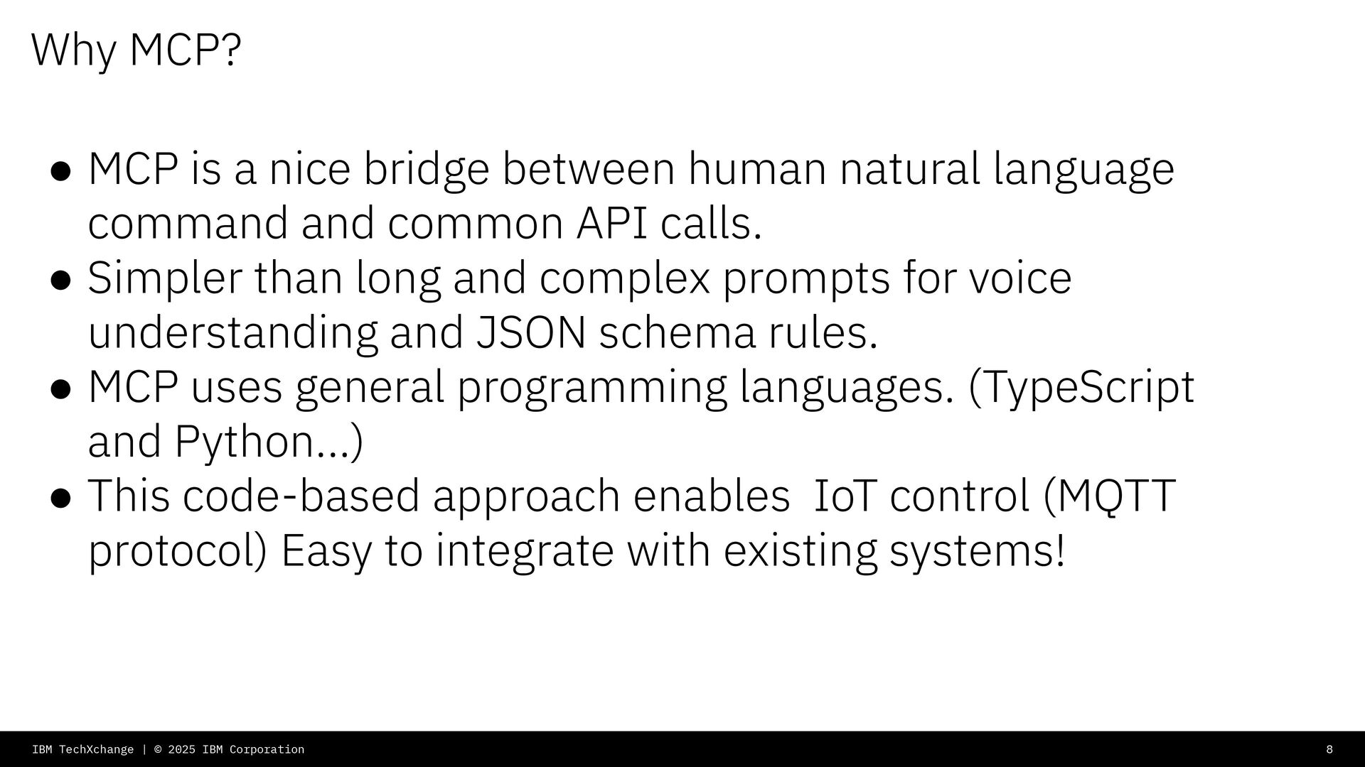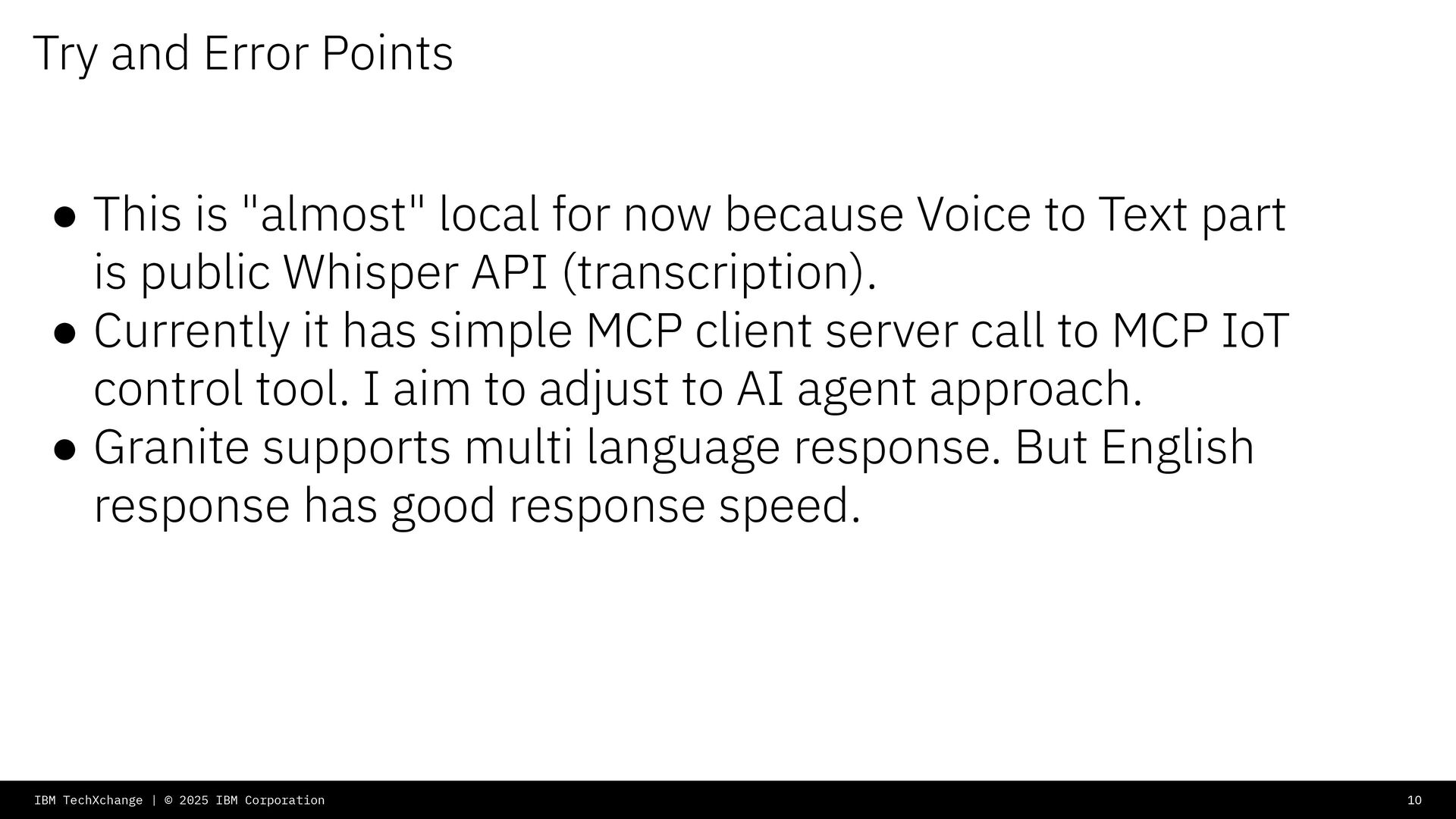 • Granite LLM's support for Function calling (structured output) is very powerful, making it easier to select tools for MCP-like IoT operations.