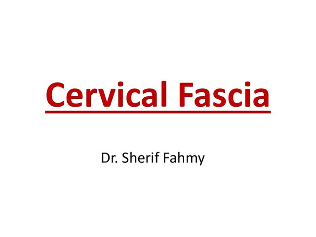 surrounds big vessels and nerves in the neck. Attachments: Above: To tympanic plate and petrous bone. Below: To fibrous pericardium. Anterior: to pretracheal fascia. Posterior: Prevertebral fascia. Dr.Sherif Fahmy
