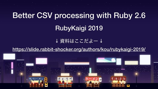 Better CSV processing with Ruby 2.6 RubyKaigi 2019 ↓ ࢿྉͩ͜͜Αʔ