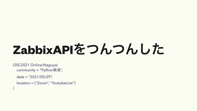ZabbixAPIΛͭΜͭΜͨ͠ OSC2021 Online/Nagoya( community = “Python౦ւ”, date = “2021/05/29”,