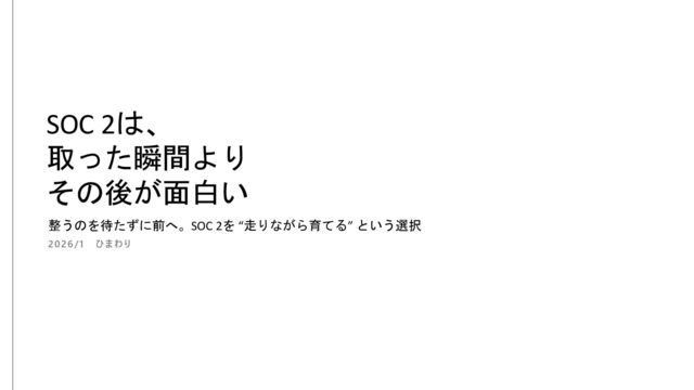 SOC 2は、 取った瞬間より その後が面白い 整うのを待たずに前へ。SOC 2を “走りながら育てる” という選択 2026/1 ひまわり