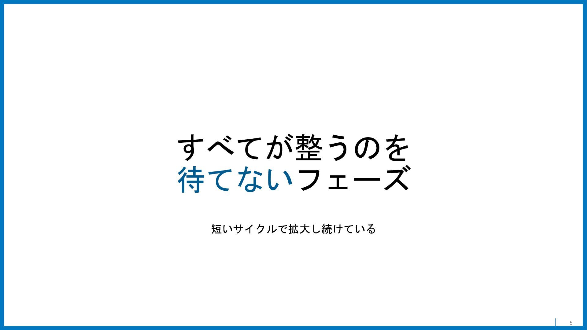 5 すべてが整うのを 待てないフェーズ 短いサイクルで拡大し続けている