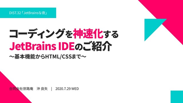 DIST.32 「JetBrainsな夜」 神速化 JetBrains IDE コーディングを する のご紹介 ~基本機能からHTML/CSSまで~ 合同会社世路庵 沖
