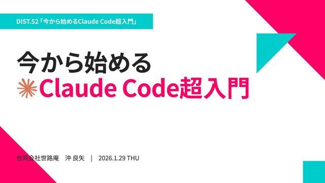 2026/1/29 DIST.52 「今から始めるClaude Code超入門」
