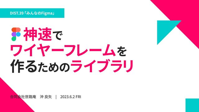 DIST.39 「みんなのFigma」 で を 作るための 神速 ワイヤーフレーム ライブラリ 合同会社世路庵 沖 良矢 | 2023.6.2