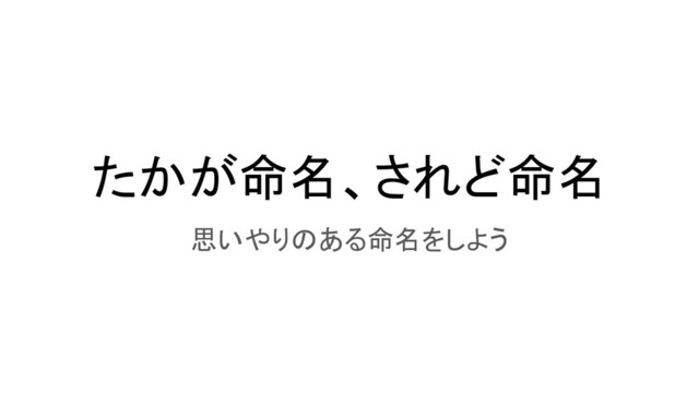 まとめ • 良い命名をするのは簡単ではないが、適当な命名をすると後 悔するかも? • 命名だけでは全てを伝えられない、伝える方法にはメリット・デ メリットがある • 良い命名が出来るようになるには、日々訓練するしかない