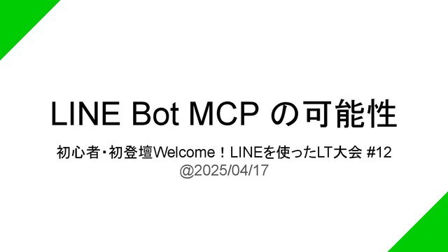 LINE Bot MCP の可能性 初心者・初登壇Welcome!LINEを使ったLT大会 #12 @2025/04/17