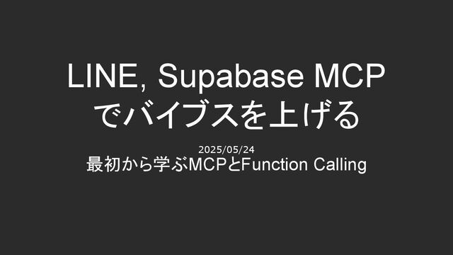 LINE, Supabase MCP でバイブスを上げる 2025/05/24 最初から学ぶMCPとFunction Calling