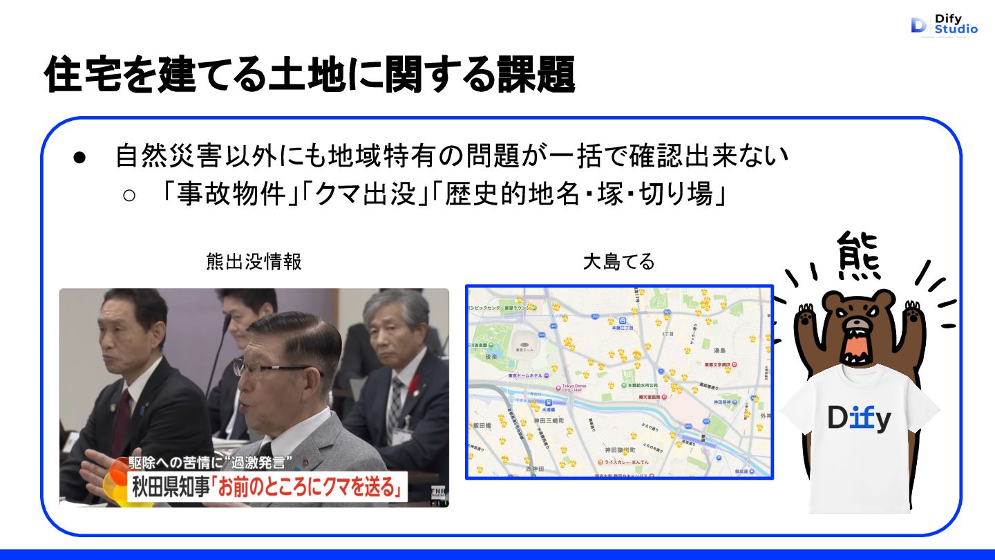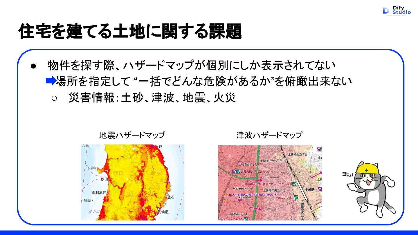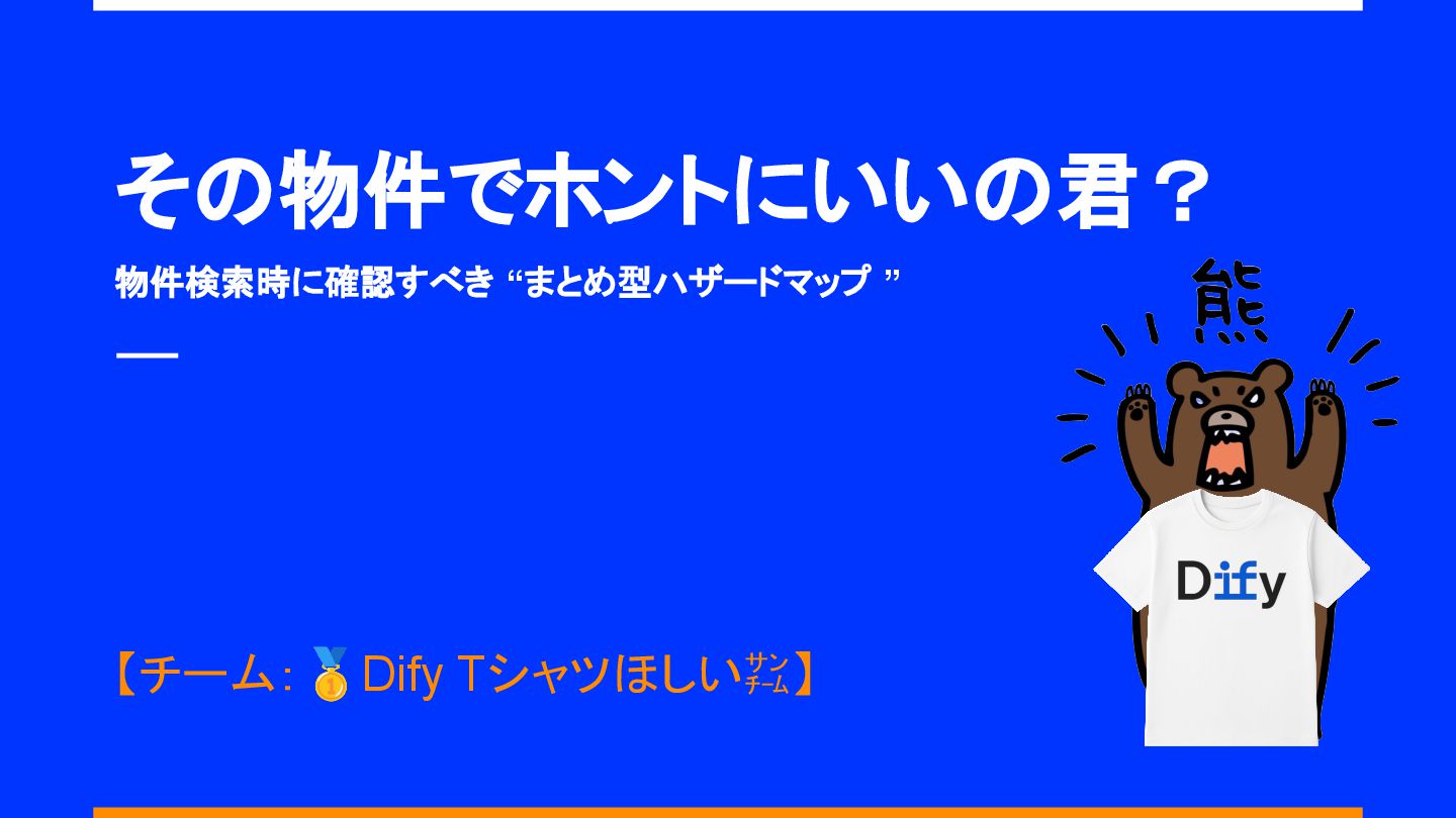 その物件でホントにいいの君? 物件検索時に確認すべき “まとめ型ハザードマップ ” 【チーム:🥇Dify Tシャツほしい㌠】