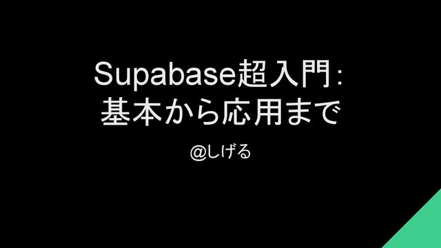 Supabase超入門: 基本から応用まで @しげる