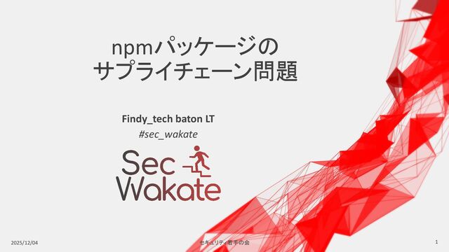 Findy TECH BATON シリーズ第6弾!「あなたの知らない ”サプライチェーン攻撃”を語る セキュリティ Night」での登壇資料です。 https://findy.connpass.com/event/375960/