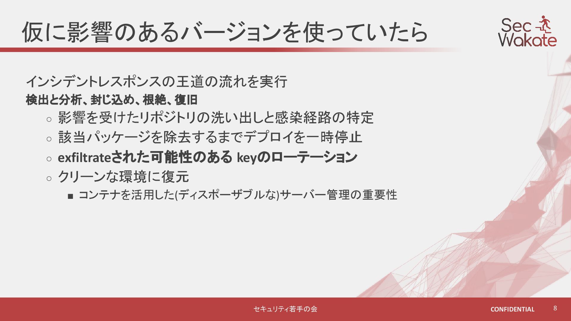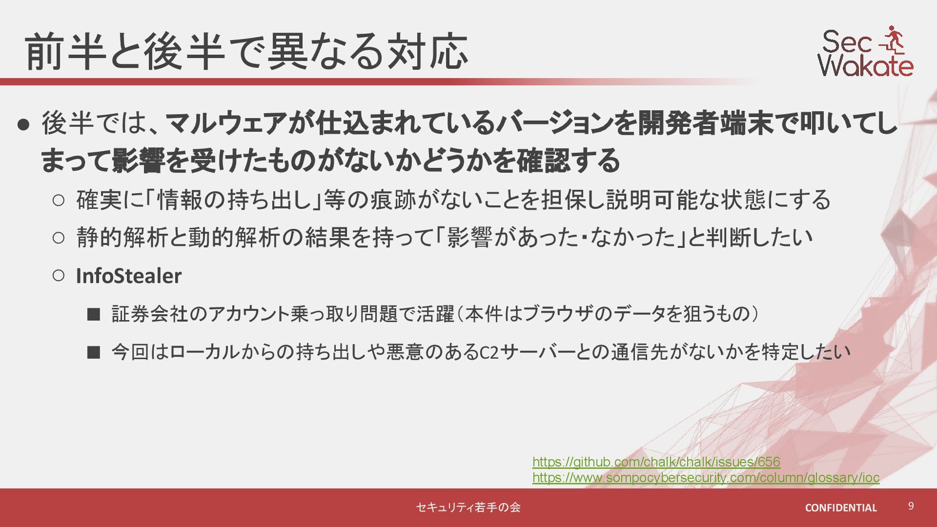 npmのサプライチェーンセキュリティの問題に対してインシデントレスポンスを中心にプロダクトサイドとコーポレートサイドの両方に関わるオペレーションについて軽く紹介しました。