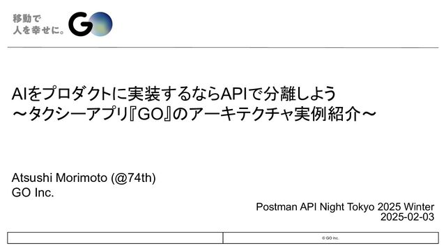 タクシーアプリ『GO』ではAI(ここではデータを使ったアルゴリズム実装を指す)を、多数本番サービスに投入しています。サービスにAIを導入する際には、ユーザアプリ向けバックエンドAPIのさらに背後でマイクロサービスとして実装されています。AIの本番導入で必要とされるアーキテクチャの考え方や、「毎回利用する特徴量が変わり、デバッグでの再現難しい」「異常値混入にシステムが弱い」などの課題への取り組みなどを解説します。