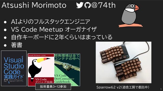 Atsushi Morimoto @74th • AIよりのフルスタックエンジニア • VS Code Meetup オーガナイザ