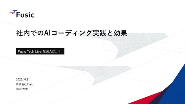 ©Fusic Co., Ltd. 0 社内でのAIコーディング実践と効果 2025.10.21 株式会社Fusic 浦田 大貴 Fusic