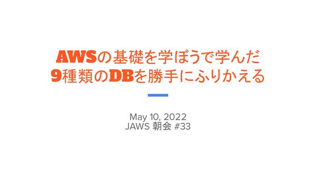 AWSの基礎を学ぼうで学んだ 9種類のDBを勝手にふりかえる May 10, 2022 JAWS 朝会 #33