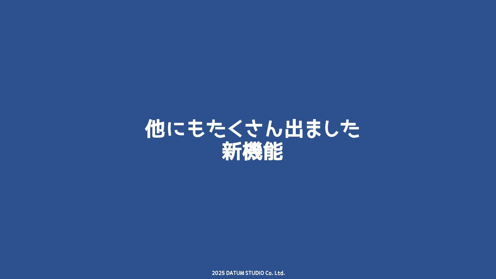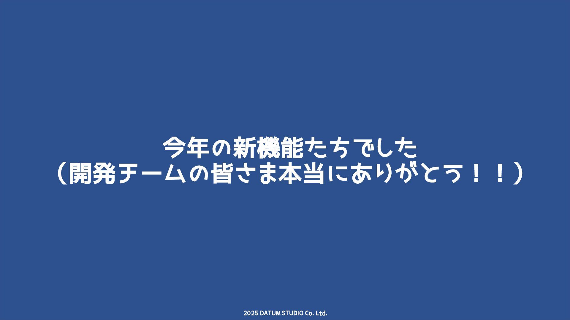 2025 DATUM STUDIO Co. Ltd. 今年の新機能たちでした (開発チームの皆さま本当にありがとう!!)