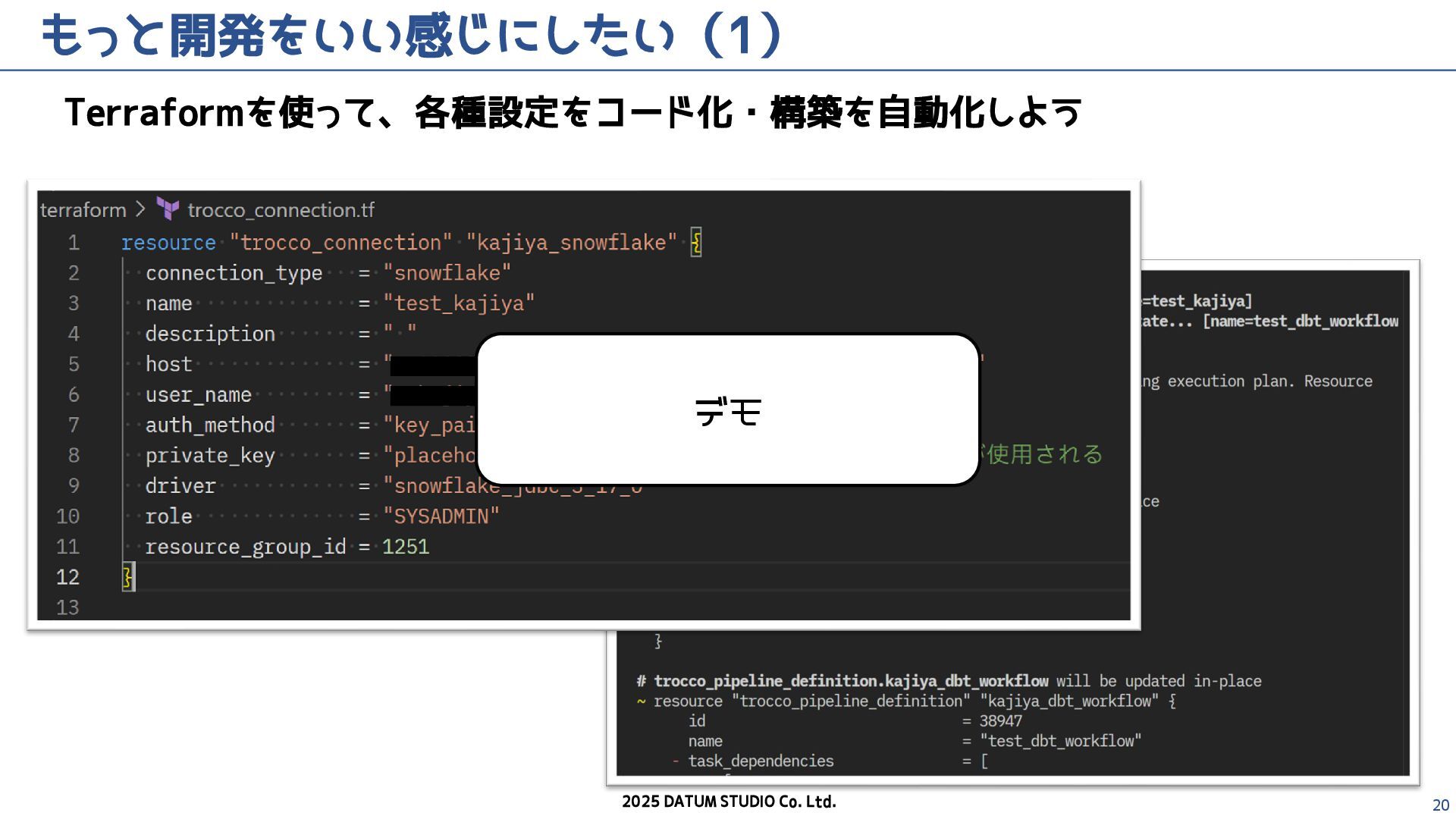 2025 DATUM STUDIO Co. Ltd. 20 もっと開発をいい感じにしたい(1) Terraformを使って、各種設定をコード化・構築を自動化しよう デモ