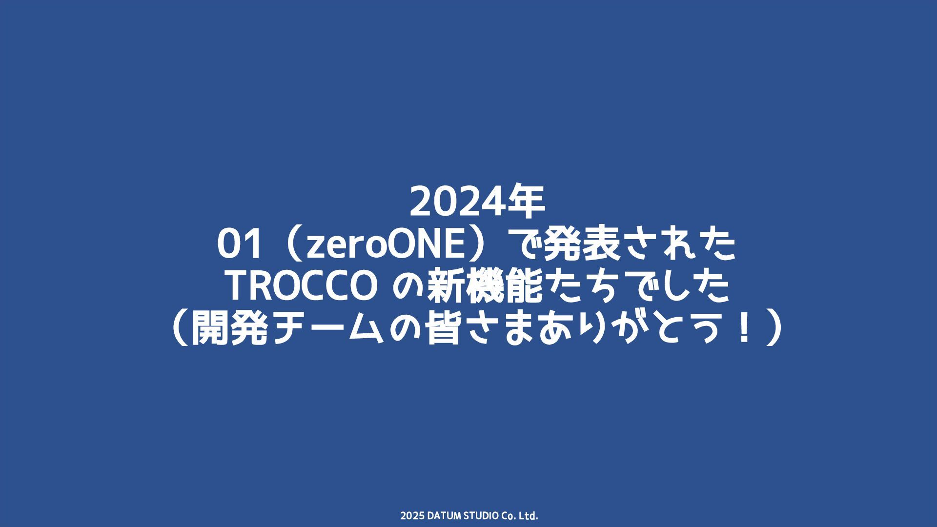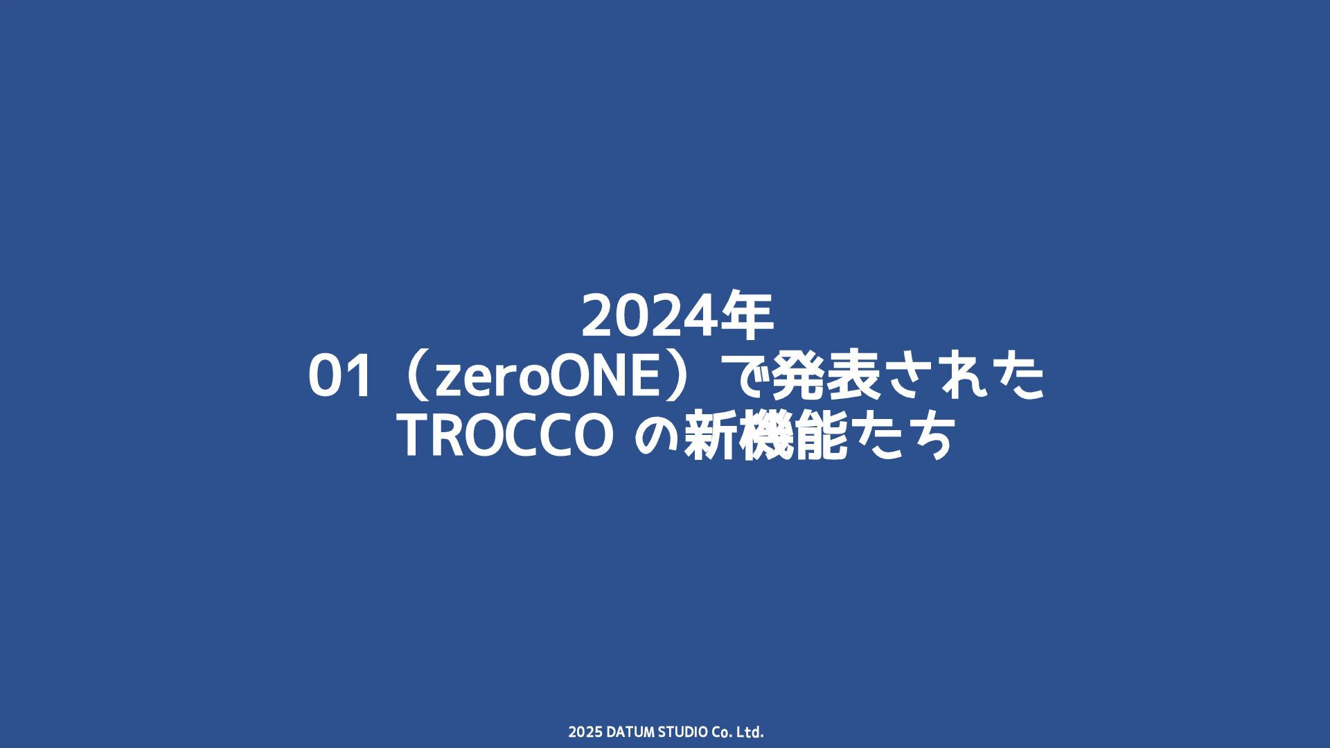 2025 DATUM STUDIO Co. Ltd. 2024年 01(zeroONE)で発表された TROCCO の新機能たち
