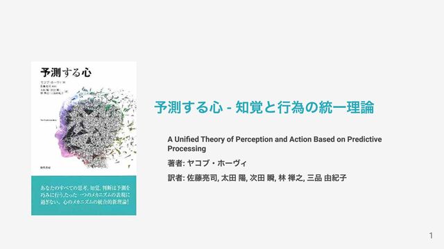 Based on Predictive Processing 著者: ヤコブ・ホーヴィ 訳者: 佐藤亮司, 太田 陽, 次田 瞬, 林 禅之, 三品 由紀子 1