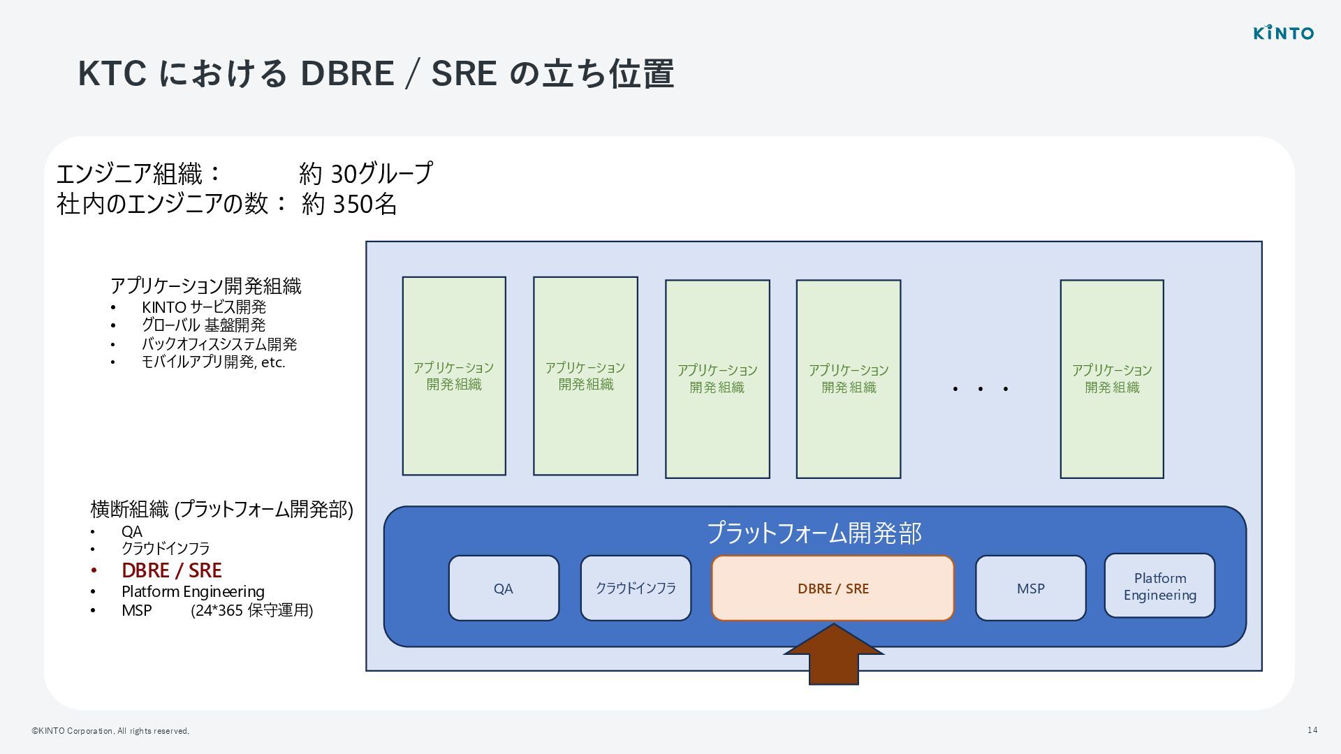 ©KINTO Corporation. All rights reserved. 14 KTC における DBRE /