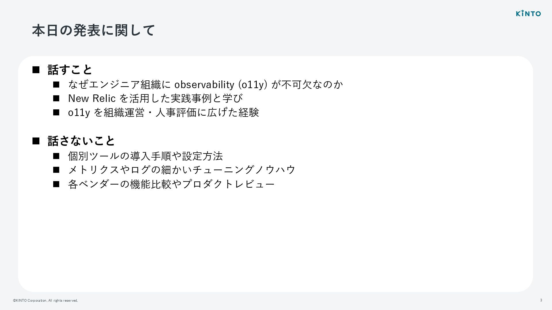 ©KINTO Corporation. All rights reserved. 3 本日の発表に関して ◼ 話すこと ◼
