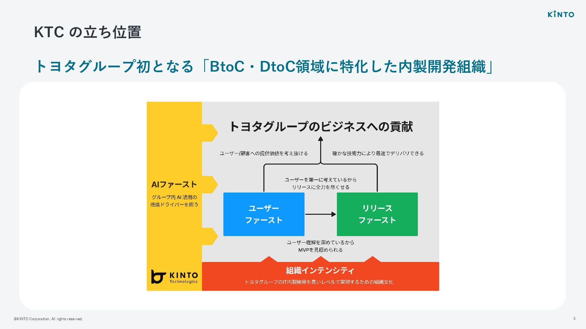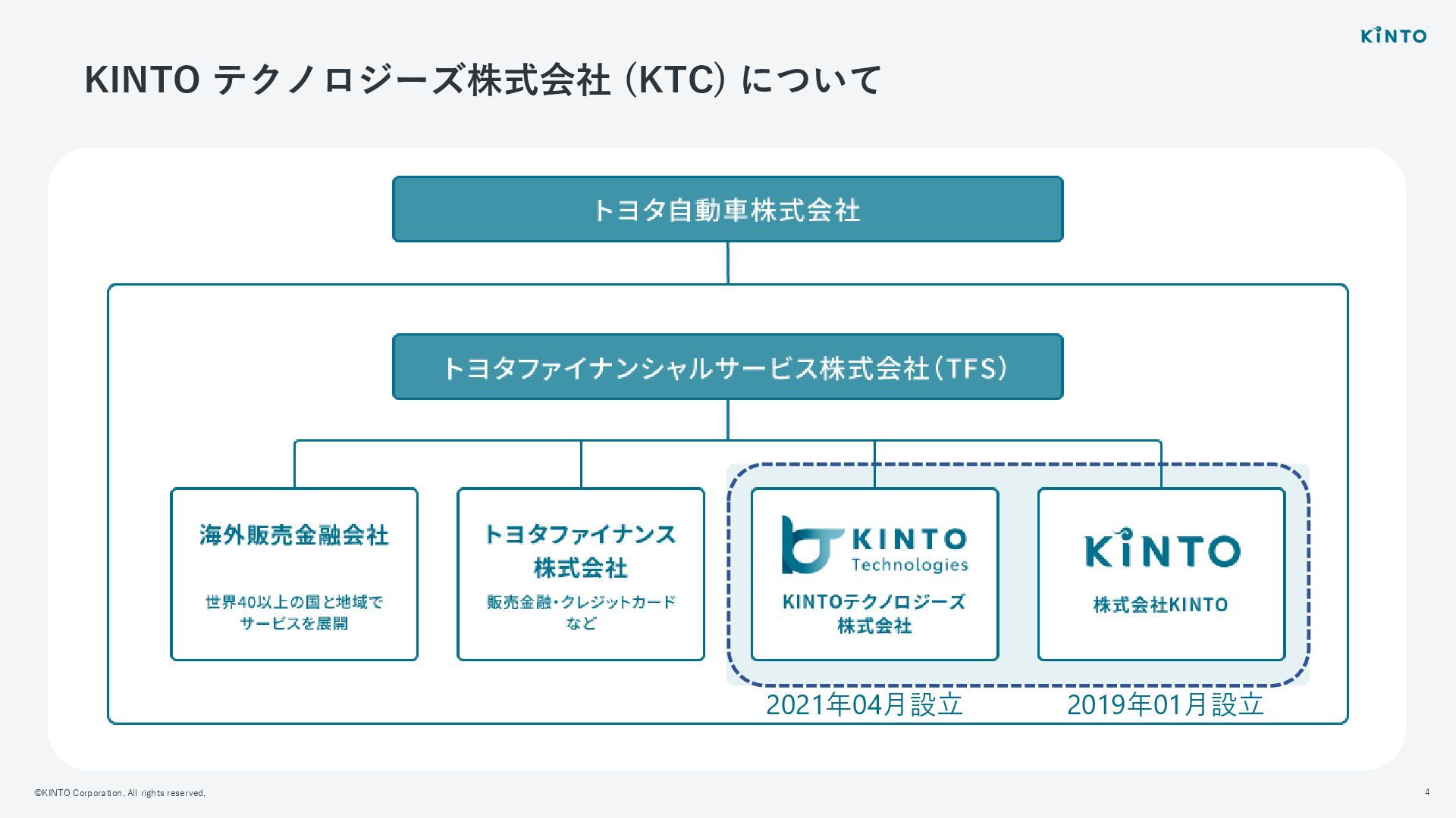 ©KINTO Corporation. All rights reserved. 4 KINTO テクノロジーズ株式会社 (KTC) について