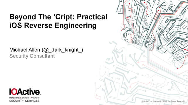 The talk will include fundamentals of reversing, a primer on iOS architecture, binary patching, reversing MACH-0 binaries, and conclude with real-world examples involving bypassing jailbreak detection routines.