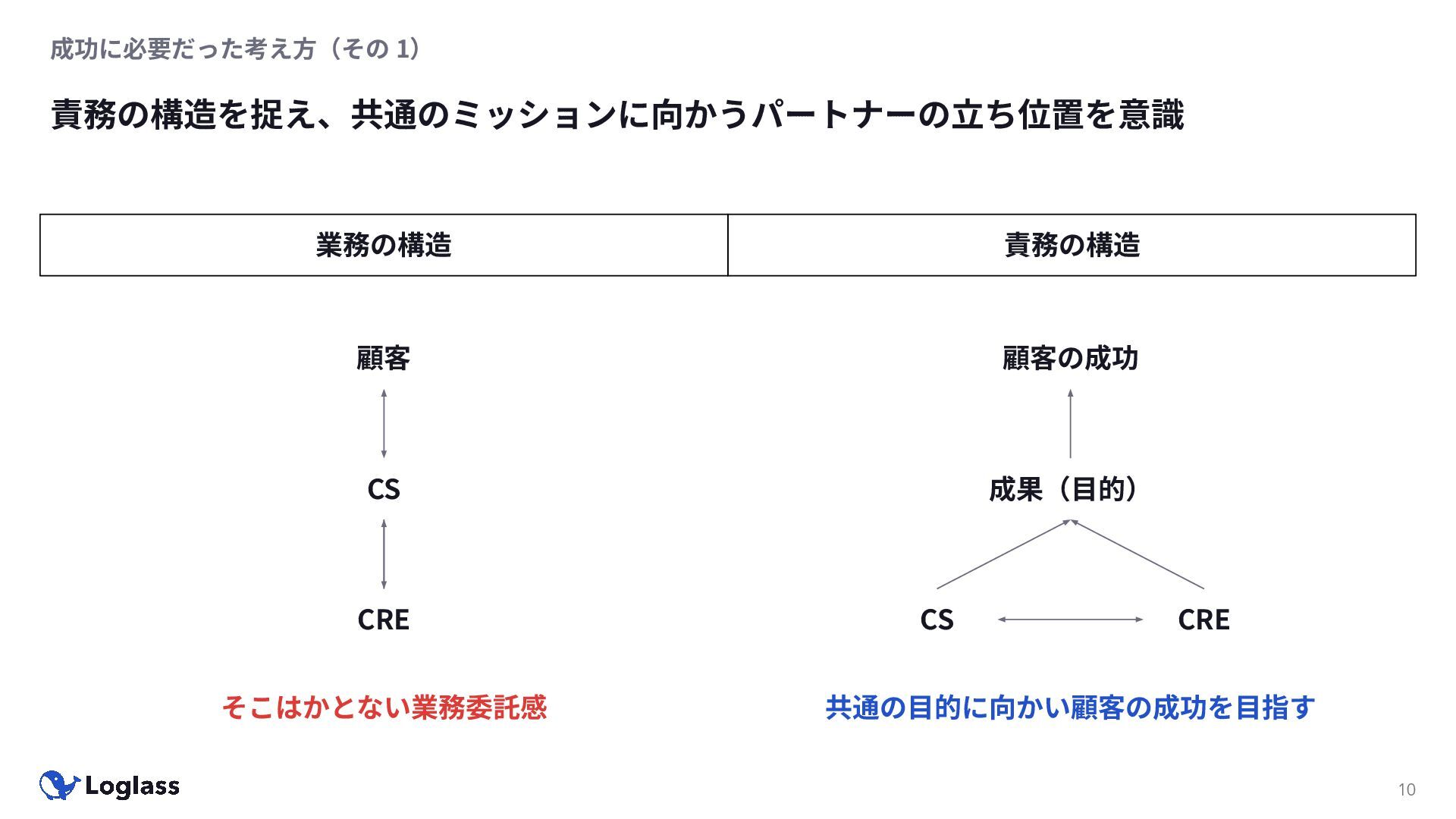 顧客の成功 CS CRE 成果(⽬的) 共通の⽬的に向かい顧客の成功を⽬指す