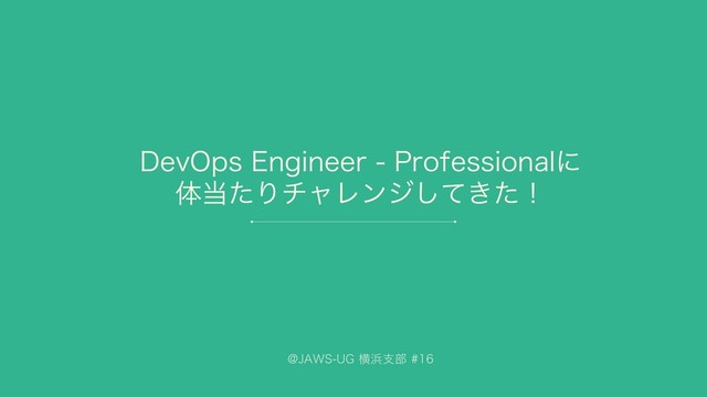 JAWS-UG 横浜#16 DevOps Engineer - Professionalに体当たりチャレンジしてきた!/ JAWS-UG-Yokohama-DevOpsEngineer-Professional