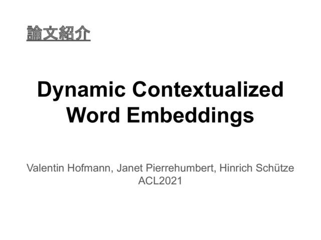 Dynamic Contextualized Word Embeddings Valentin Hofmann, Janet Pierrehumbert, Hinrich Schütze